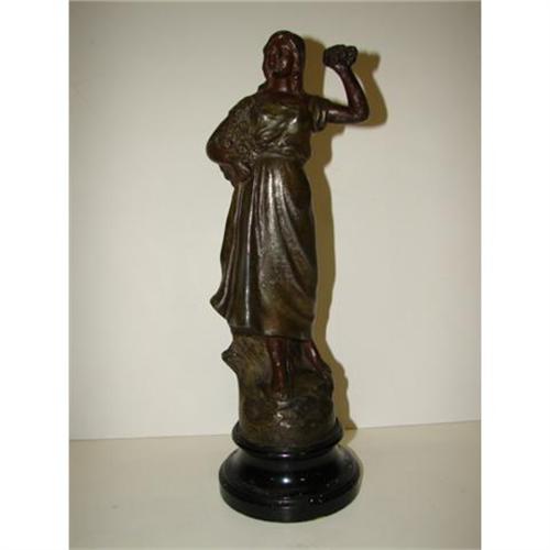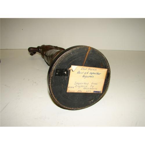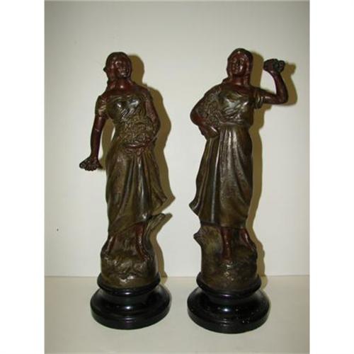 PAIR OF FRENCH SPELTER FIGURINES. Both figurines depict a female holding a bundle of flowers. 13.25" H