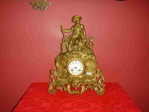 FRENCH STATUE OF BOY HUNTING CLOCK