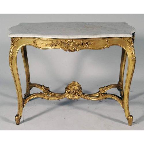 FRENCH STYLE GILTWOOD CENTER TABLE with marble top, 42" long circa 1900 CONDITION REPORT: no problems.