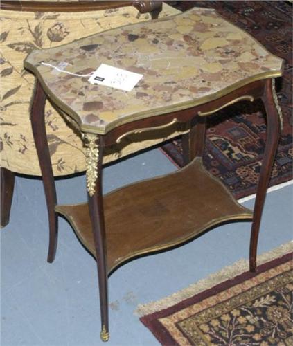 FRENCH STYLE MARBLE TOP SIDE TABLE with gilt mounts, marble with crack, circa 1900, SHIPPING: See recommended third party shippers. This item can't be packed or shipped by seller.,