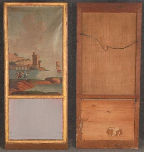 FRENCH TRUMEAU MIRROR with painted coastal scene 57"x24", 19th century <BR>condition: excellent