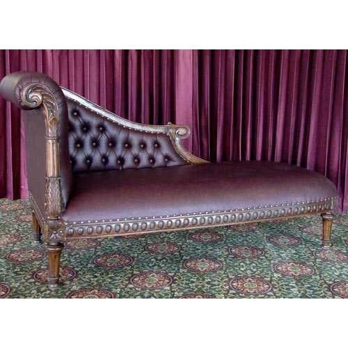 <tr><td>Title:FRENCH VICTORIAN LEATHER SETTEE CHAISE LOUNGE</td></tr>