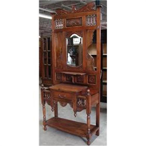 JUST WHAT YOU'VE BEEN LOOKING FOR.... VERY VERSATILE DECORATIVE PIECE...TERRIFIC FORM AND SHAPE...SOLID WALNUT BUFFED IN A BEESWAX FINISH...ONE FUNCTIONAL DRAWER, WITH UMBRELLA STANDS ON EACH SIDE...MIRROR TO THE CENTER WITH COAT HAT RACKS ON EACH SIDE...THE BEST OF THE BEST IN ANTIQUES! DON'T MISS OUT ON THIS BEAUTIFUL VICTORIAN FRENCH MIRRORED HALL TREE STAND...LOVELY IN ANY BED AND BREAKFAST!PLEASE EMAIL US FOR AN ESTIMATED SHIPPING PRICE AND DON'T FORGET TO CHECK OUT OUR 400+ ITEMS LISTED!