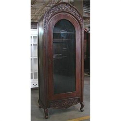 VERY VERSATILE DECORATIVE PIECE... TERRIFIC FORM AND SHAPE... IN GOOD CONDITION... SKELETON KEYED LOCK WITH KEY... BEAUTIFULLY CARVED WITH SPOON TIPPED FEET... BUFFED IN A BEESWAX FINISH...FRONT GLASS DOOR COULD BE REPLACED WITH MIRROR... THIS FABULOUS PIECE has an elegant, classical Victorian style and flair! FUNCTIONAL AS A TV CABINET, ARMOIRE, ETC. PLEASE EMAIL US FOR AN ESTIMATED SHIPPING PRICE AND DON'T FORGET TO CHECK OUT OUR 400+ ITEMS LISTED!
