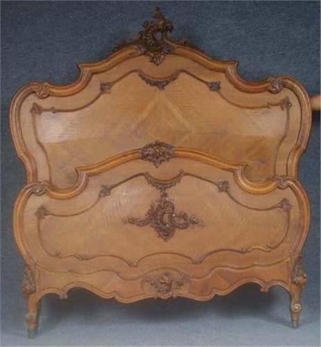 FRENCH WALNUT ROCOCO CARVED BED, height: 65"