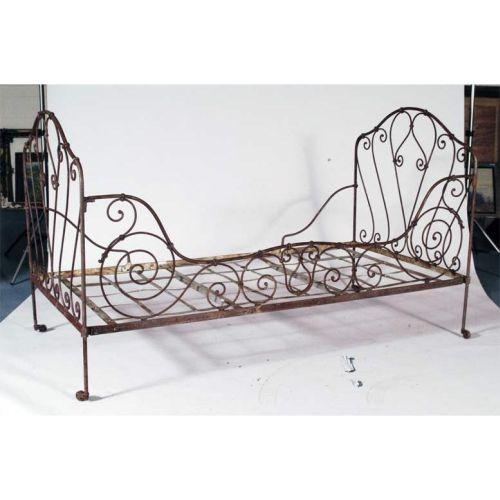 FRENCH WIRE LIT D'ALCOVE, 75"x40"x44" high, late 19th century, CONDITION REPORT: no damage or restoration, overall oxidation.