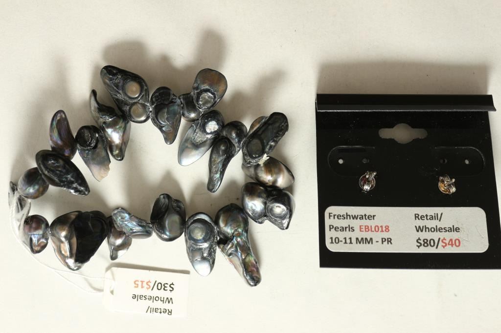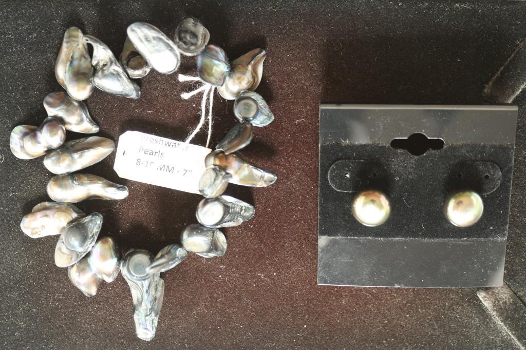 BRACELET IS 8-10 MM IRREGULAR AND THE EARRING (POST STYLE) 10-11 MM. RETAIL IS $110.00 DARK IN COLOR