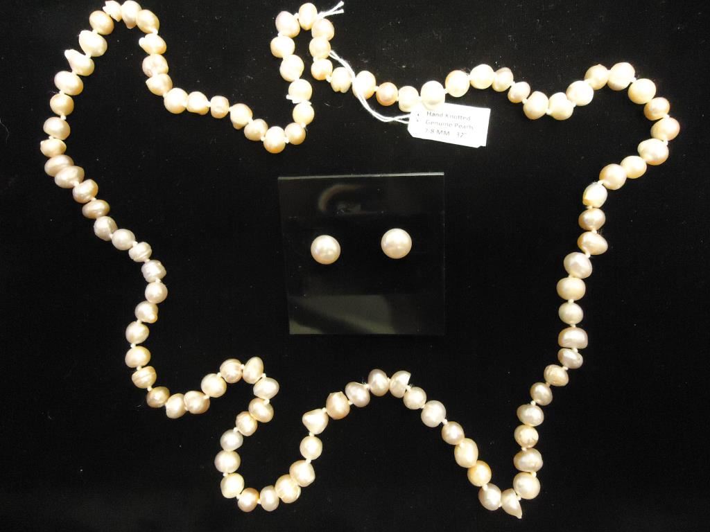 NECKLACE IS 32" 7-8MM AND EARRINGS ARE 9-10MM. RETAILS IS $300.00, COLOR IS PINK