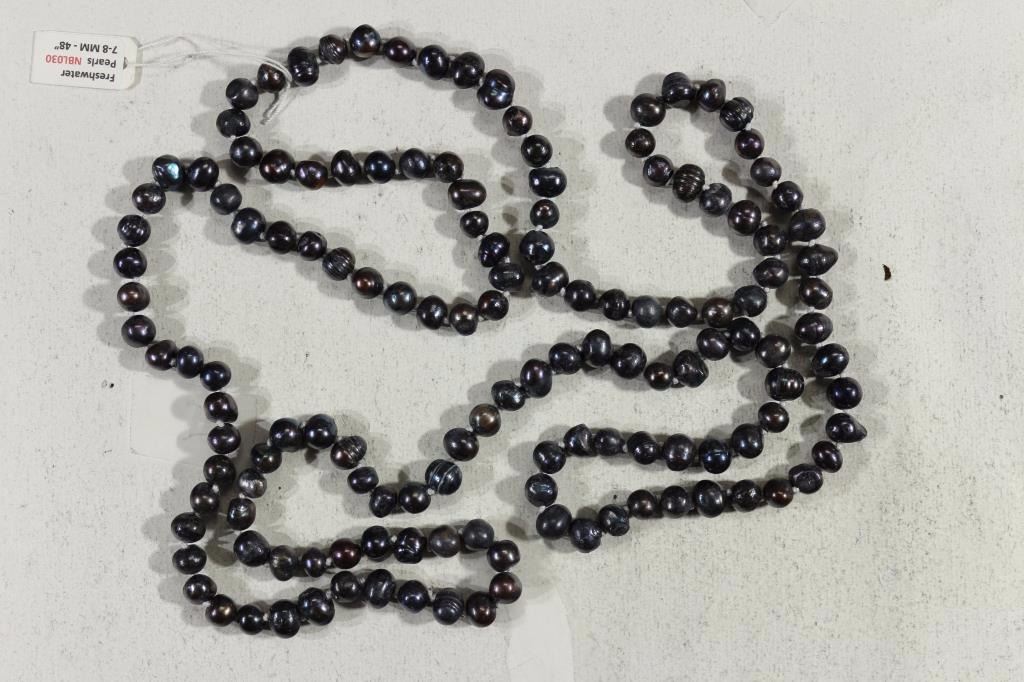 NECKLACE IS 48" 7-8MM DARK COLOR, RETAIL IS $150.00