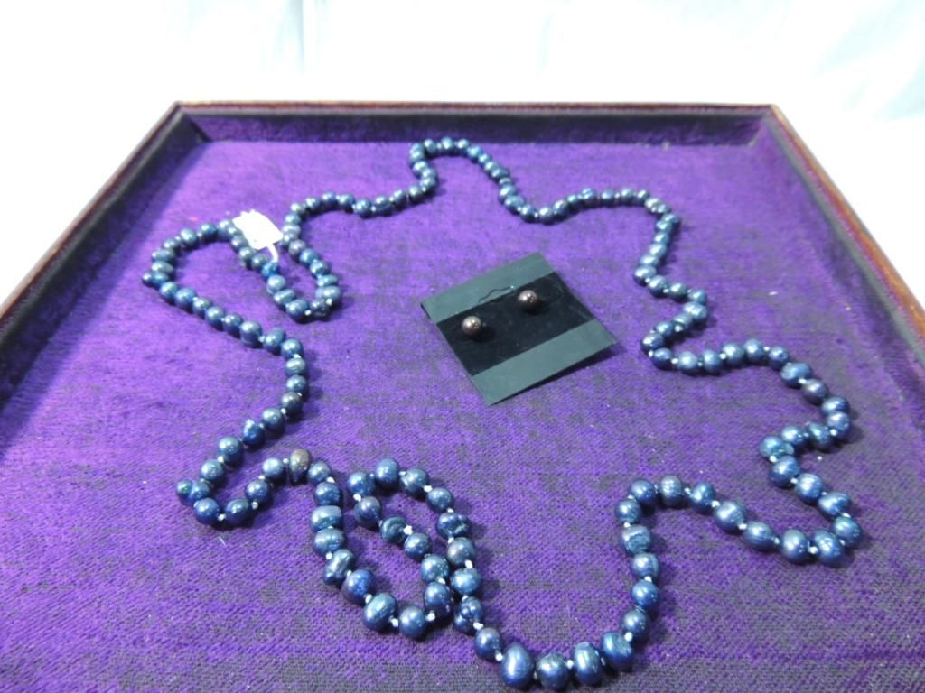 GENUINE PEARL NECKLACE AND EARRINGS. 8-9 MM 46" STRAND. AS SHOWN. SEE PHOTO FOR MORE DETAILS.