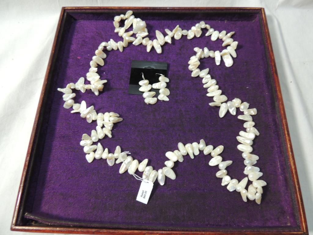 GENUINE PEARL NECKLACE AND EARRINGS CREAM COLOR. HAND KNOTTED 8-11 MM 48" STRAND NECKLACE. DROP EARRINGS AS SHOWN. SEE PHOTO FOR MORE DETAILS.