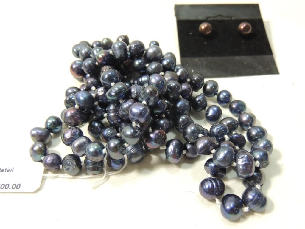 GENUINE PEARL NECKLACE AND EARRINGS. 8-9 MM 46" STRAND. AS SHOWN. SEE PHOTO FOR MORE DETAILS.