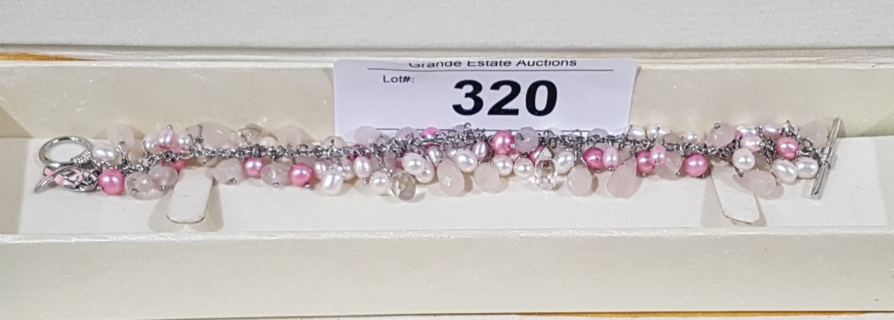 FRESHWATER PEARL & QUARTZ BRACELET W/STERLING CLASP