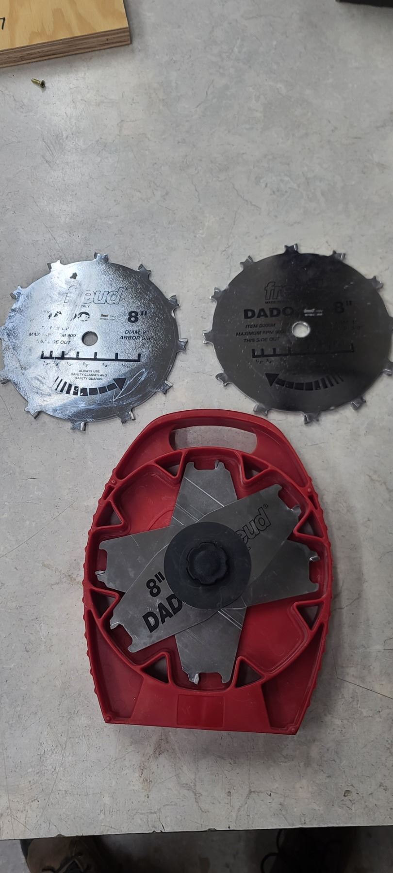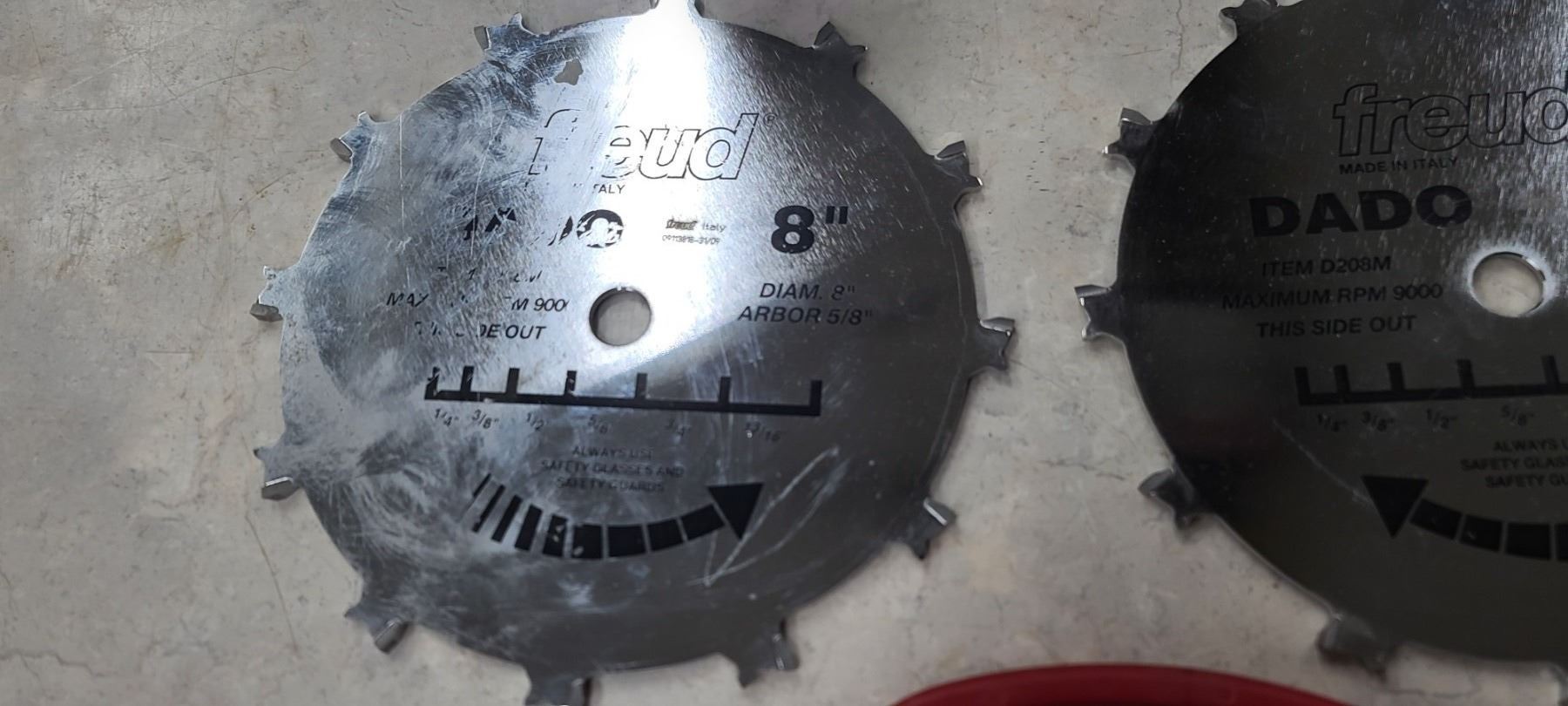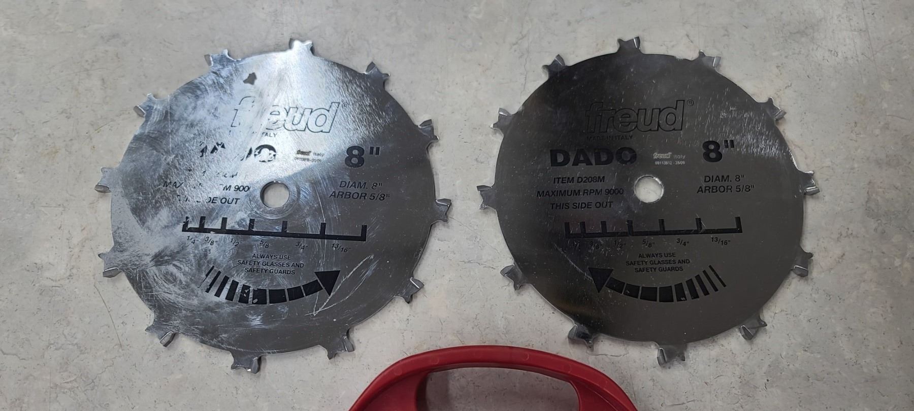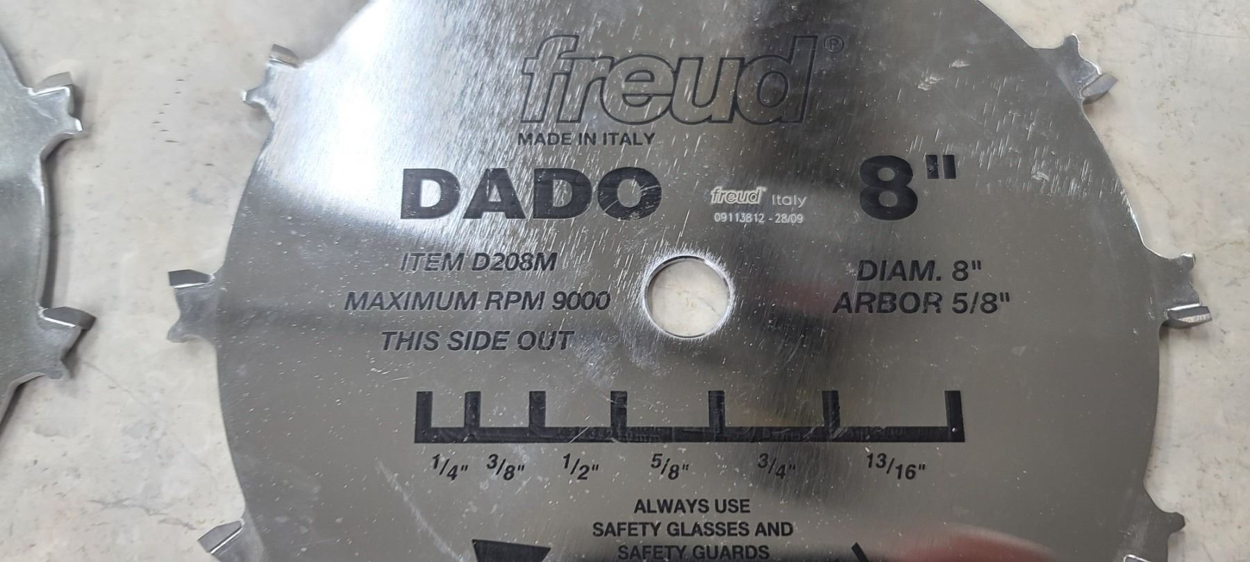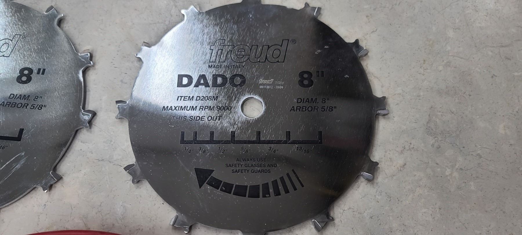 FREUD 8" DADO BLADES (QTY3) AND TWO FREUD 8" 5/8" 9,000RPM