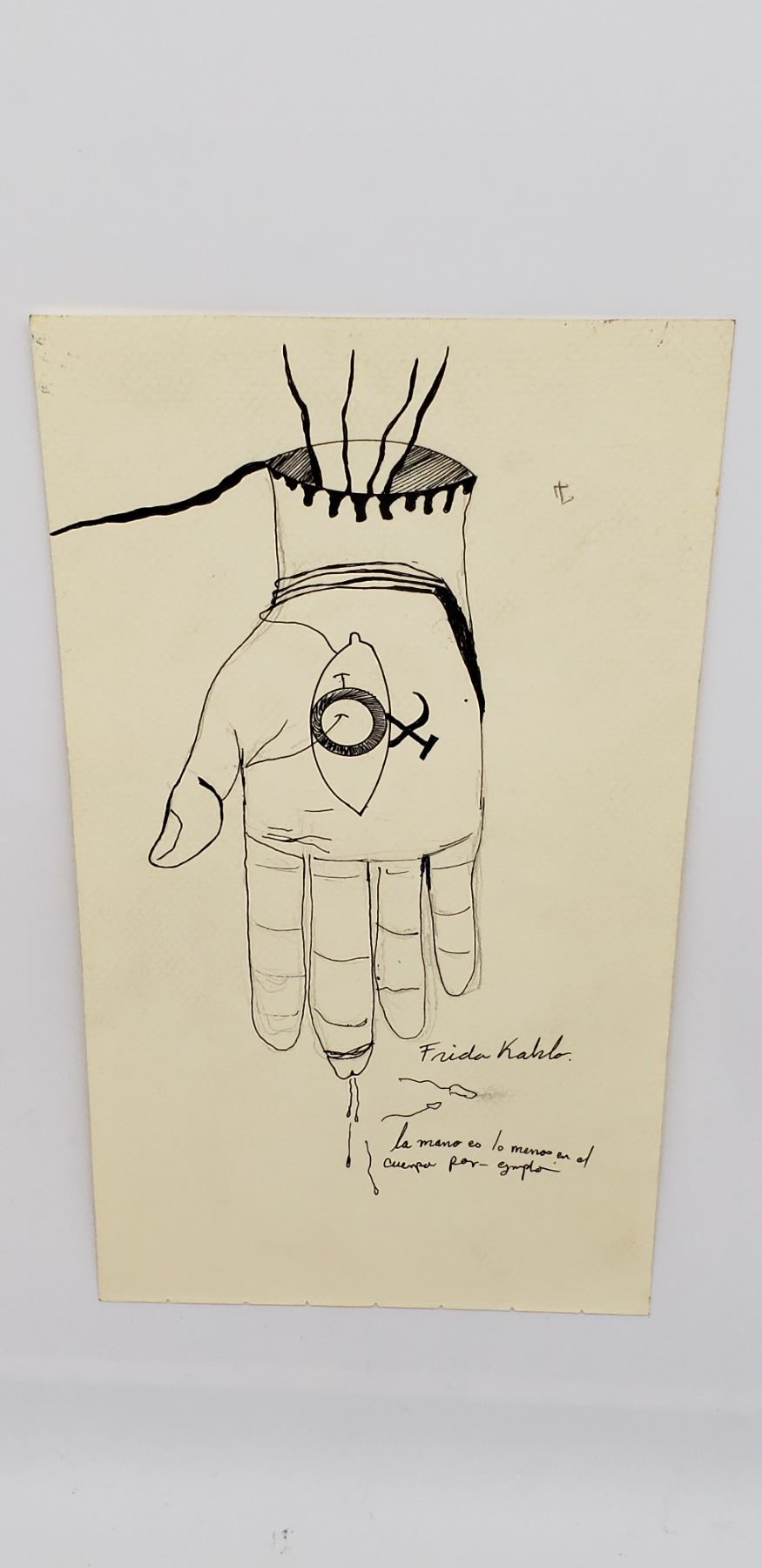 Frida Kahlo Original Pen and Ink on Paper Piece is 5 3/4" x 10 1/2"Magdalena Carmen Frida Kahlo y Calderón (Spanish pronunciation: [ˈfɾiða ˈkalo]; 6 July 1907 – 13 July 1954[1]) was a Mexican painter known for her many portraits, self-portraits, and works inspired by the nature and artifacts of Mexico. Inspired by the country's popular culture, she employed a naïve folk art style to explore questions of identity, postcolonialism, gender, class, and race in Mexican society.[2] Her paintings often had strong autobiographical elements and mixed realism with fantasy. In addition to belonging to the post-revolutionary Mexicayotl movement, which sought to define a Mexican identity, Kahlo has been described as a surrealist or magical realist.[3] She is known for painting about her experience of chronic pain.[4 All items Located in in Hollywood Florida Warehouse For Shipping Call today for quote they have item numbers and Pak Mail is available for all your custom packaging and shipping needs. We can package, palletize, crate, insure and ship to any Domestic or International location. All packaging and shipping fees must be paid in full before shipment is released. On international shipments, consignee is responsible for all Duties, Taxes, Customs Clearance or any destination fees that apply. Please visit our website @ www.pakmail.com/us770 for contact information or to get a quote. (Let us know you are a winning bidder from the Puckett auction so we can correctly arrange pick up for your item