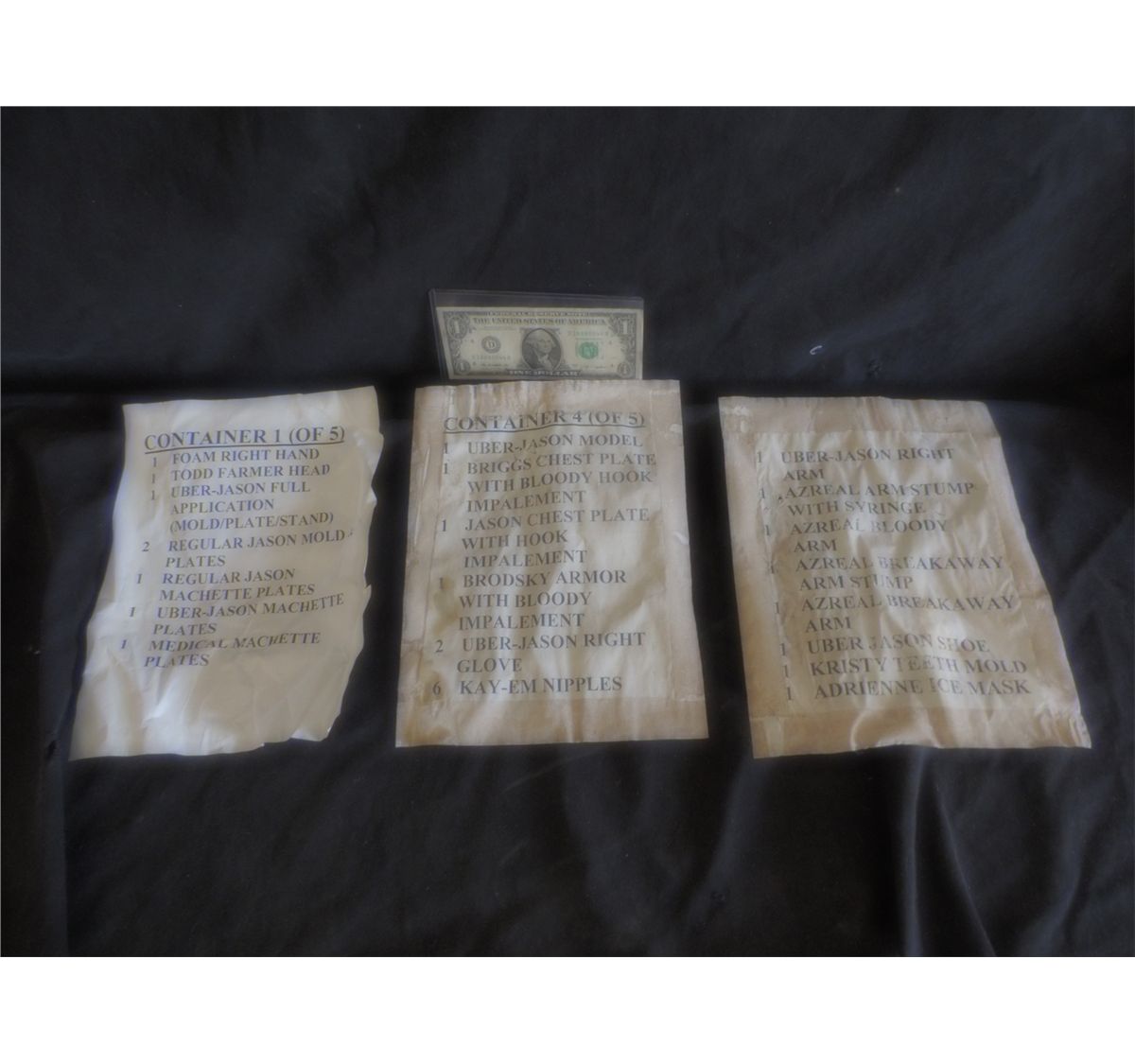 These are cool! They are a set of Prop lists adhered to crates from the production of FRIDAY THE 13th PART 10, JASON X!