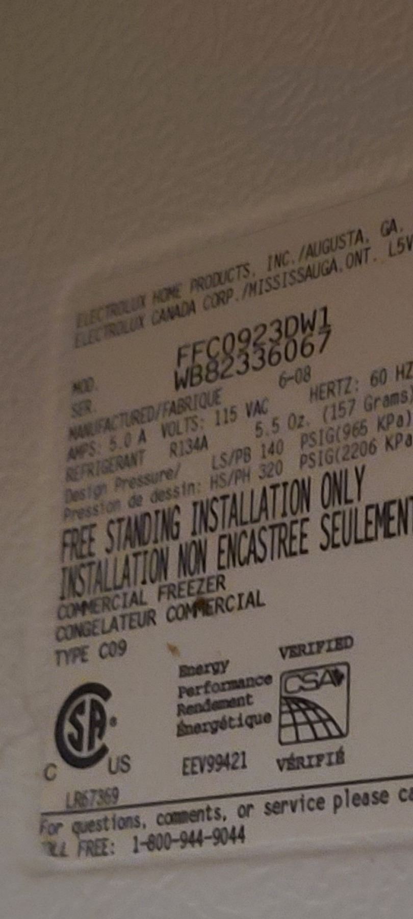 FRIDIGAIRE 10CU FT FREEZER COMES WITH CONTENT