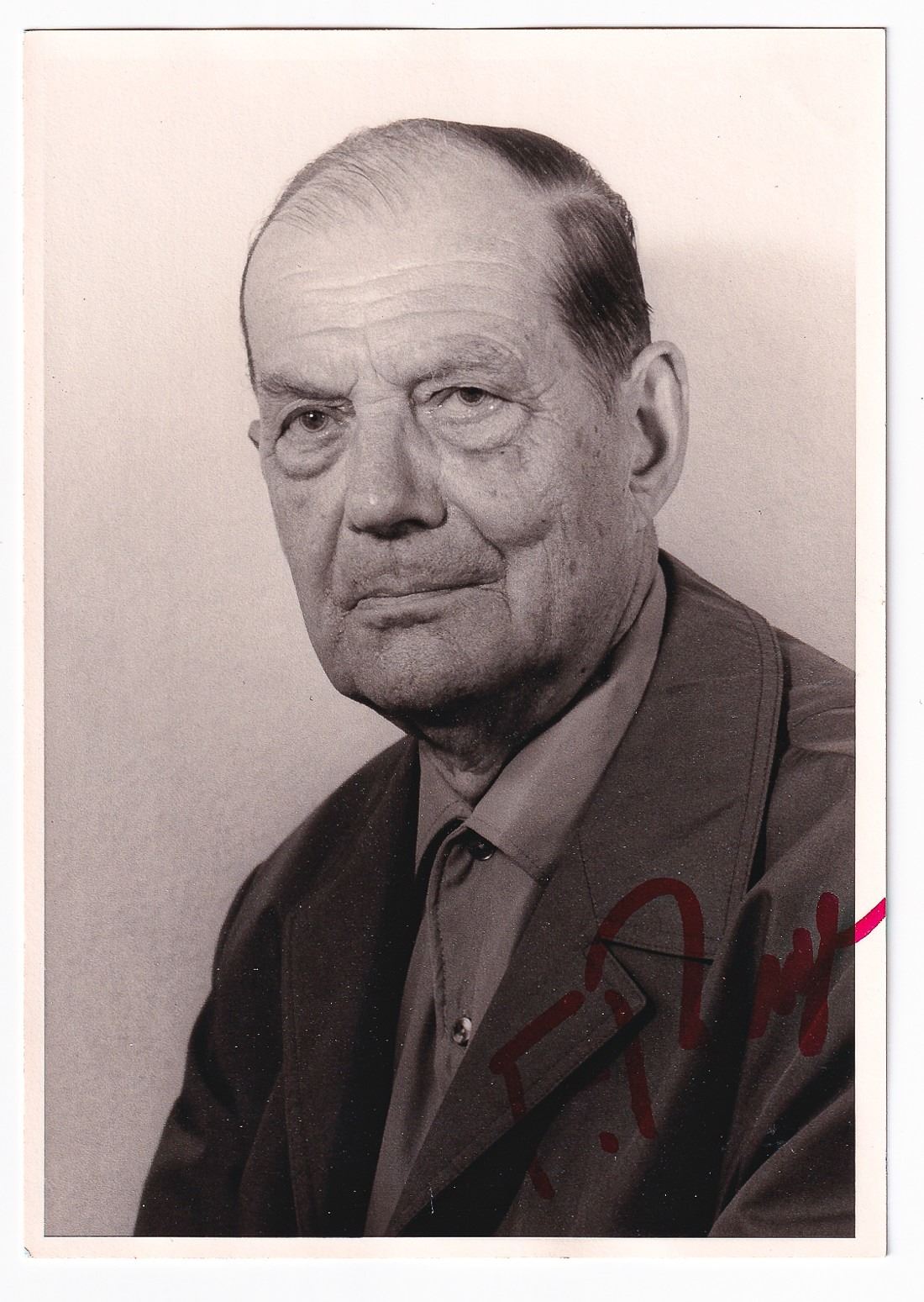 (1894-1985) Officer in the German Navy during WWII and was a recipient of the Knight's Cross of the Iron Cross. Signed photograph in red ink. 3.5 x 5 inches.