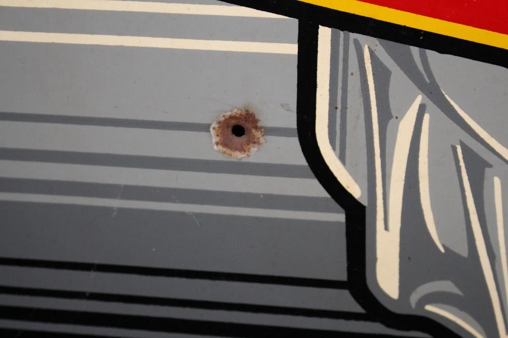 SST, 47 1/2 X 47. THE WOOD FRAME HAS BEEN REPLACED. THERE IS WEAR AND MANY EXTRA NAIL HOLES. APPROXIMATE SHIPPING COST $100 TO $250. THIS ITEM IS GUARANTEED TO BE OLD AND ORIGINAL.