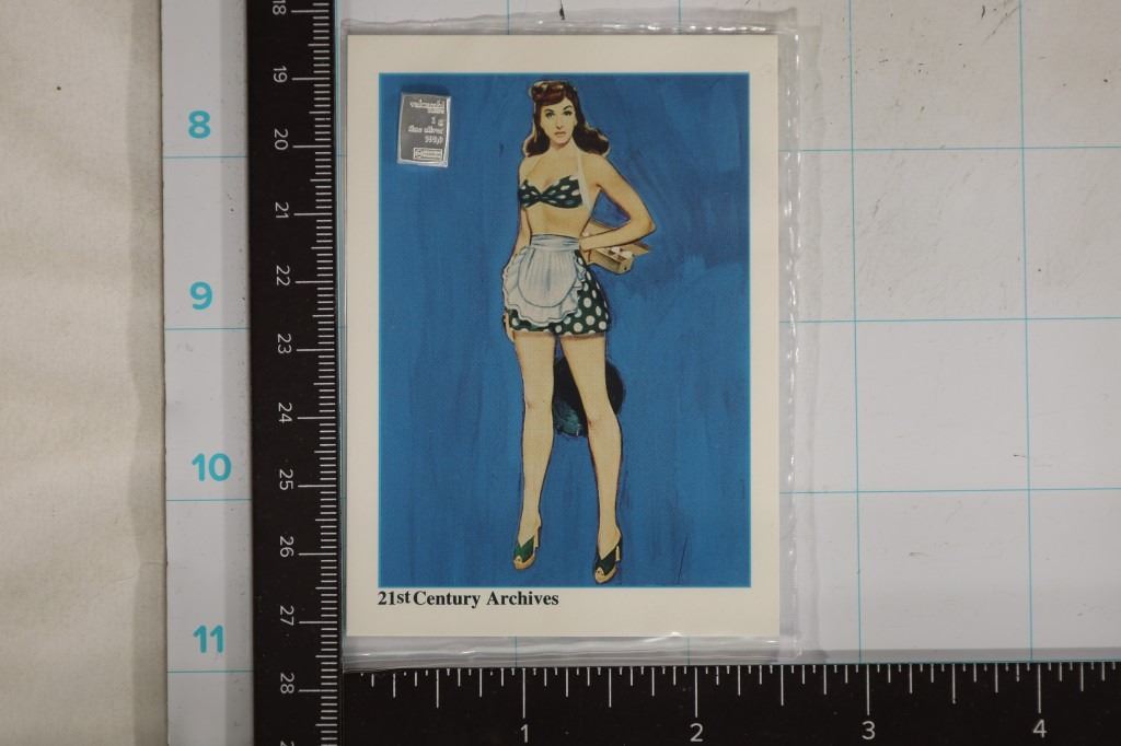 VALCAMBI .999 SILVER BAR. PIN UP IS PAULETTE GODDARD ILLUSTRATED FOR THE SUGGESTIVE CALENDER MAID