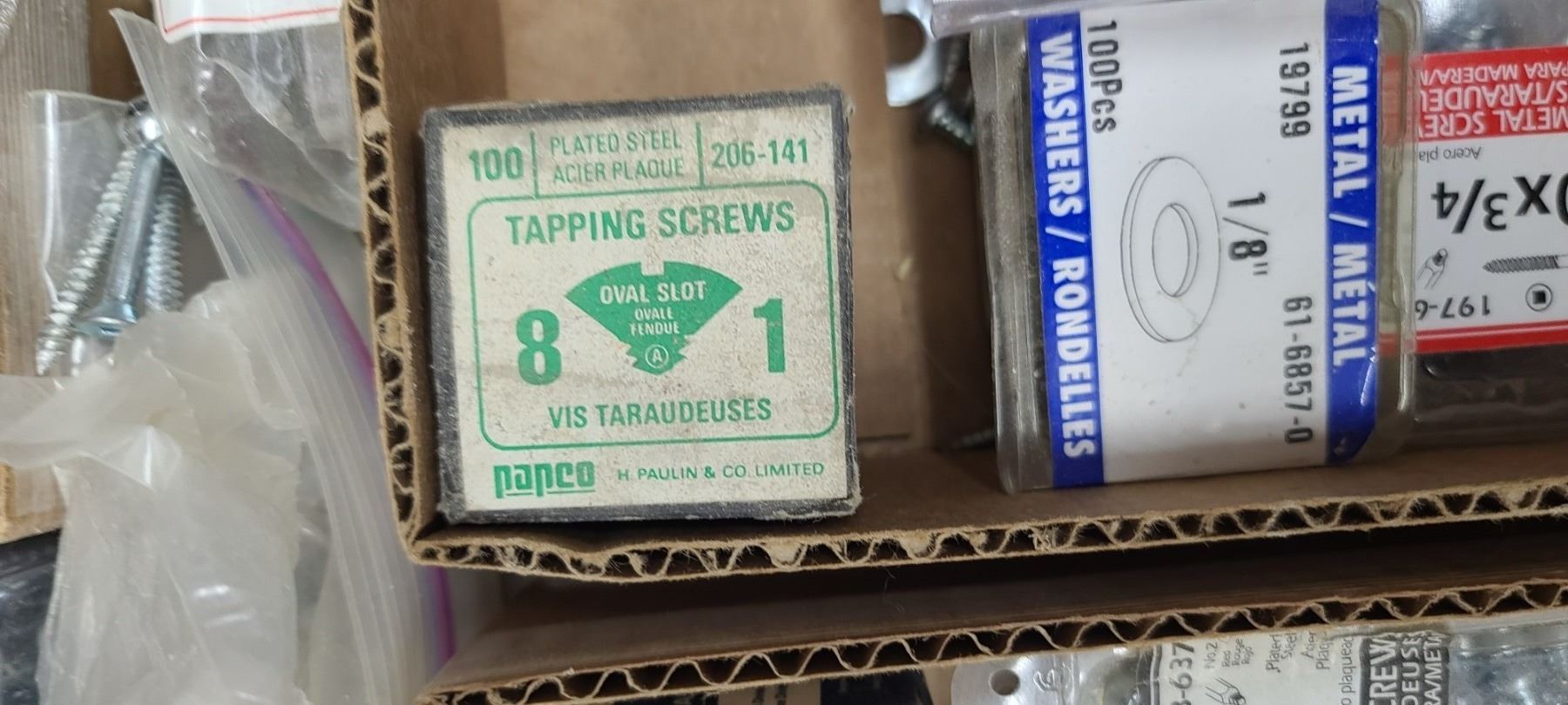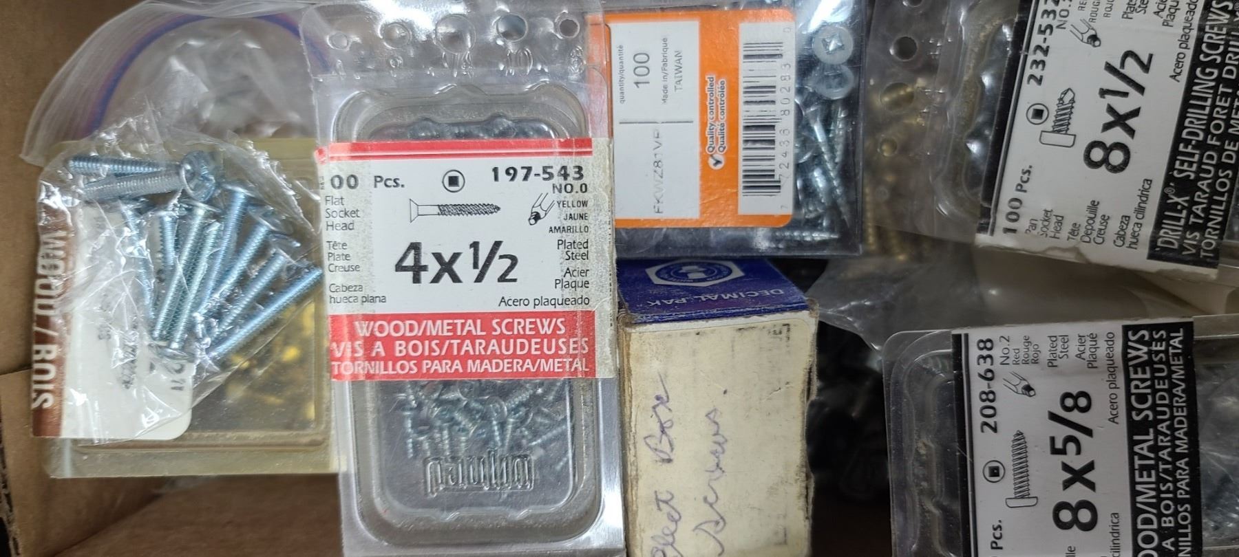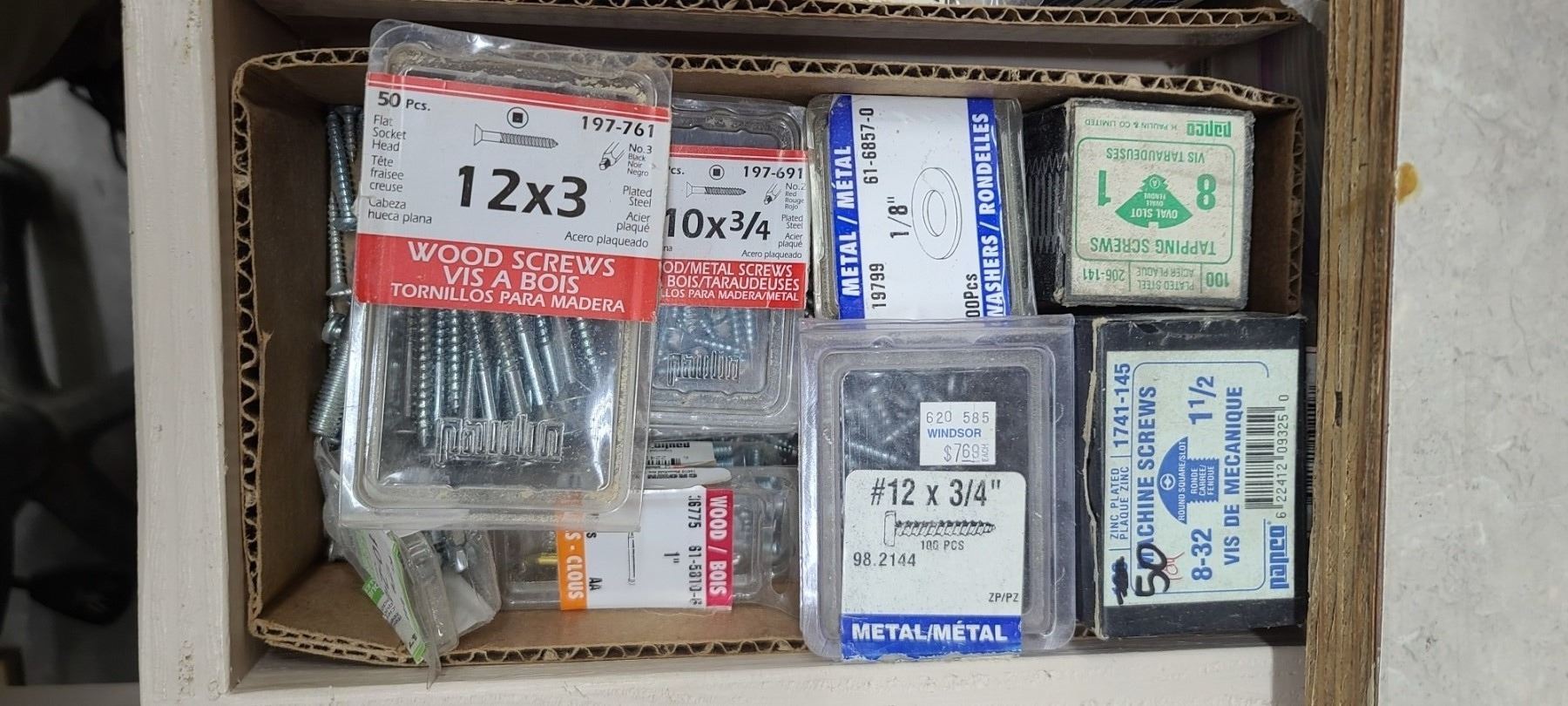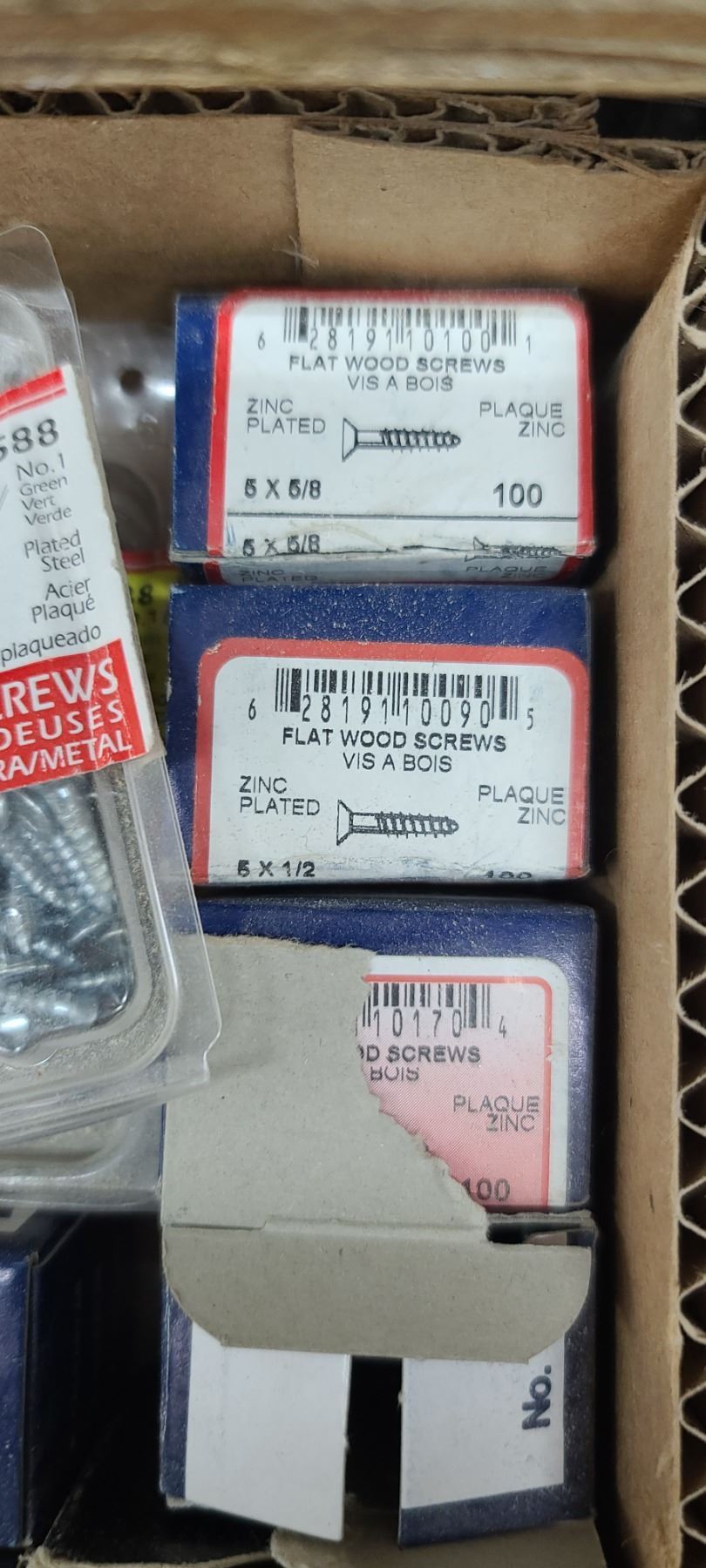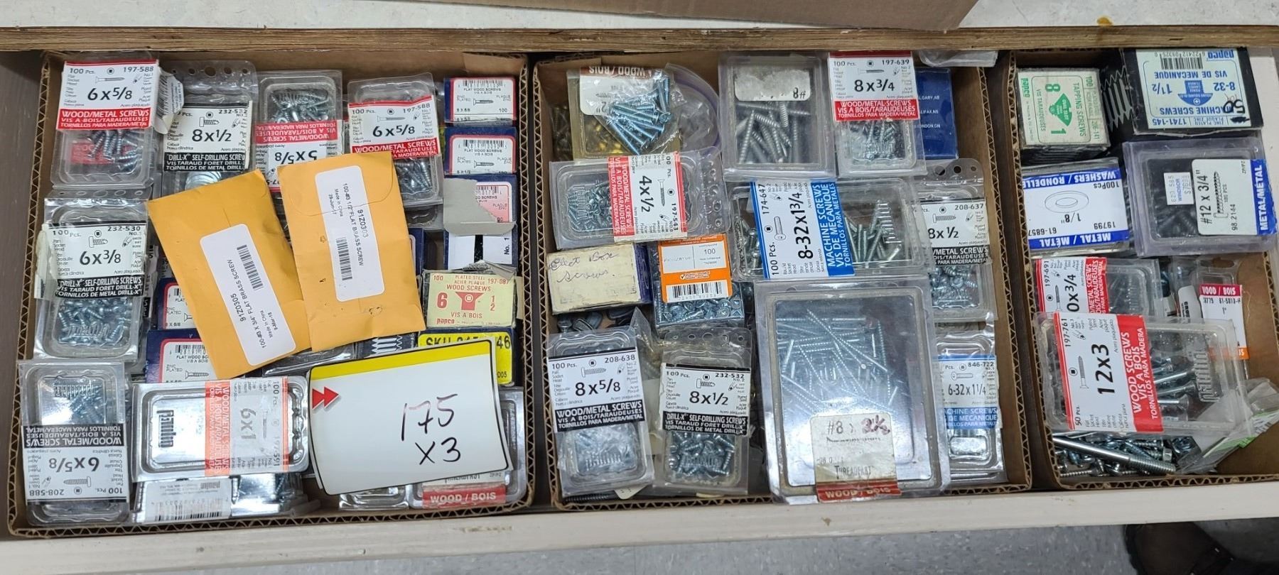 FRONT THREE BOXES OF ASSORTED SCREWS