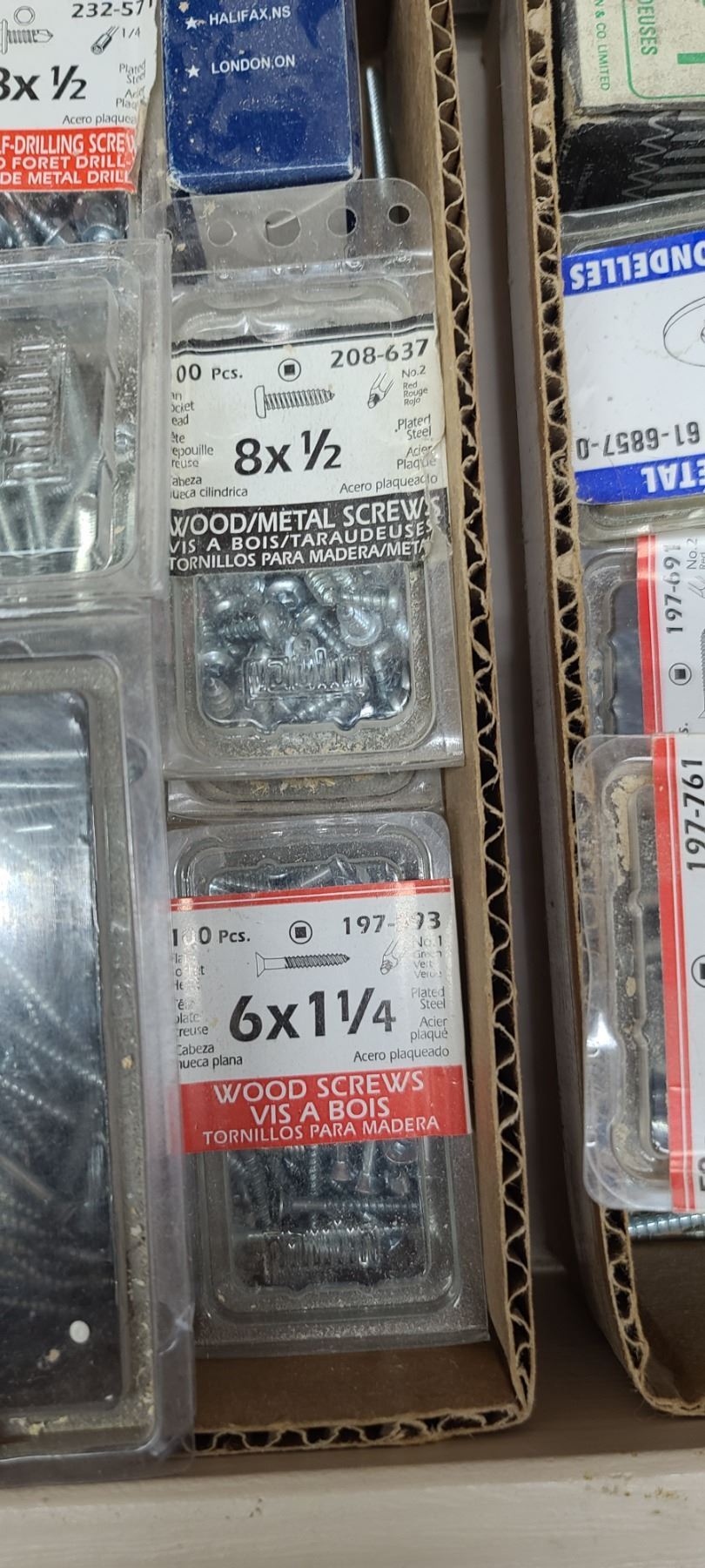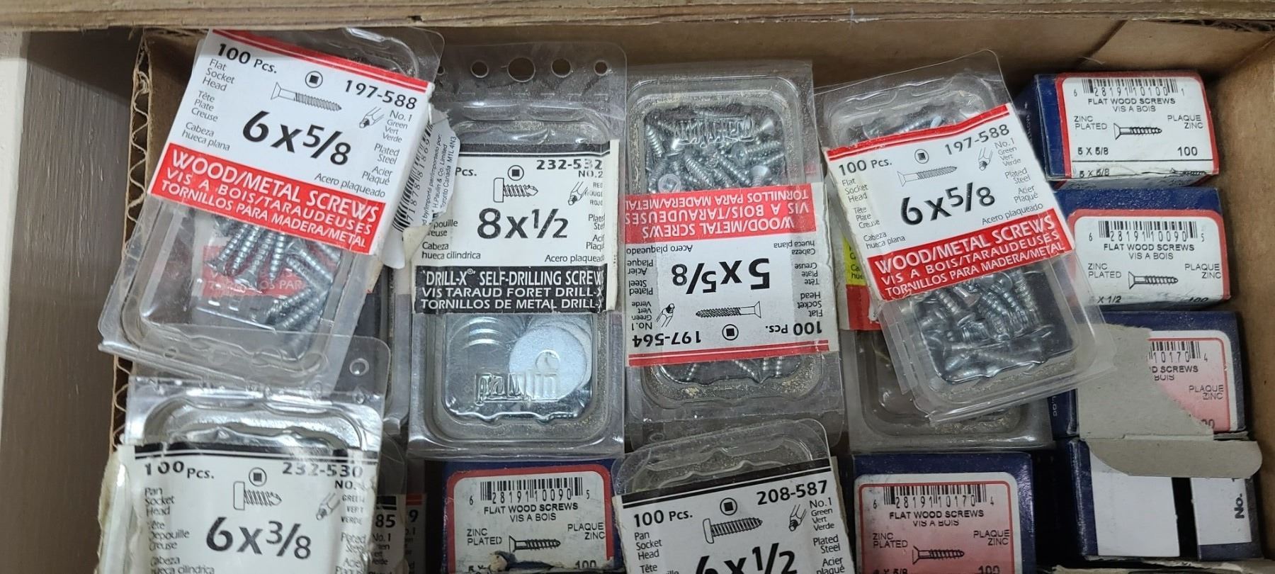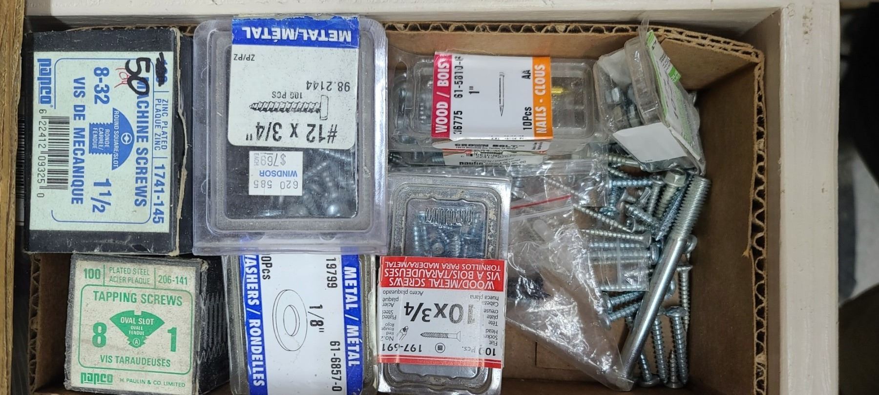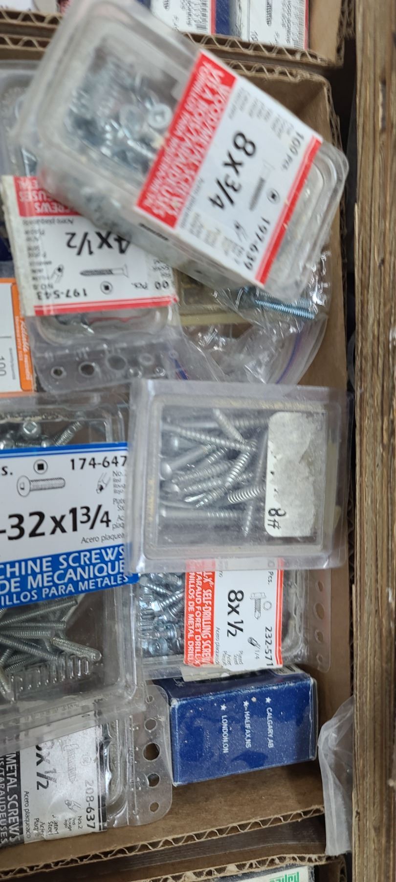 FRONT THREE BOXES OF ASSORTED SCREWS
