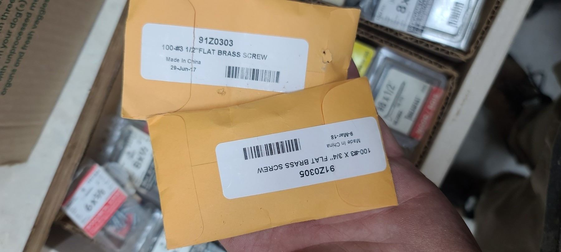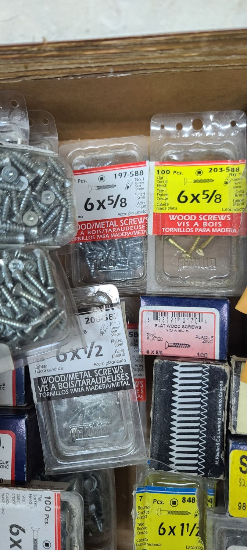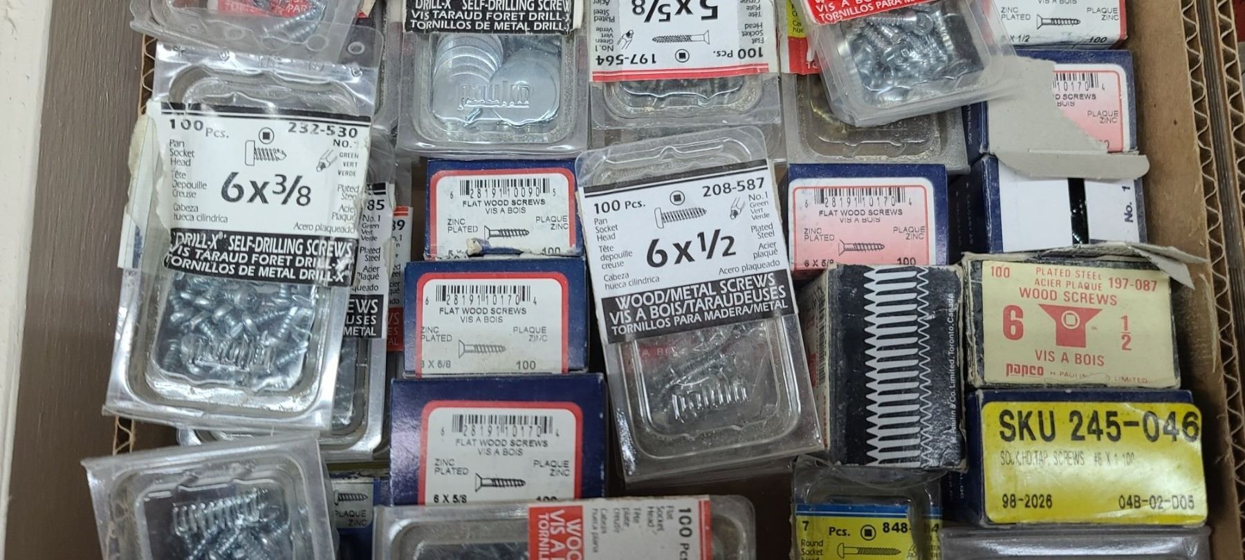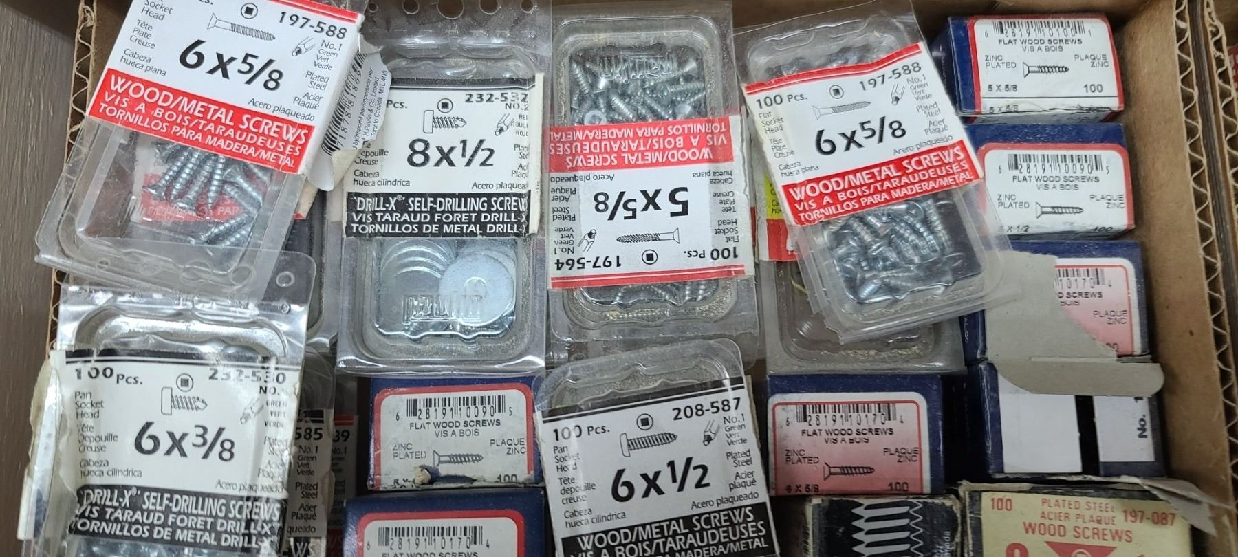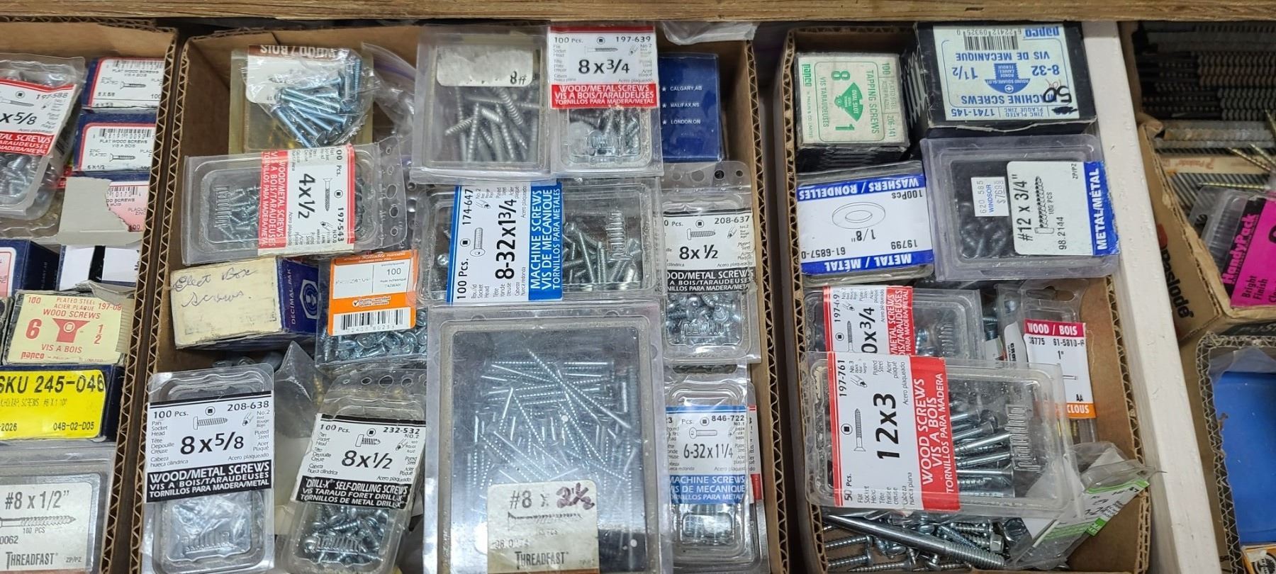 FRONT THREE BOXES OF ASSORTED SCREWS