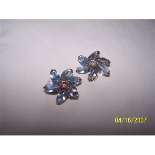 Up for sale is a lovely pair of Frosted Blue Rhinestone Earrings with an Aurora Borealis center. They would make great earrings for this spring/summer. The designer is unknown. They are prong set in a goldtone setting. The front and back are in excellent condition. The stones are in excellent condition with no missing or dead stones.