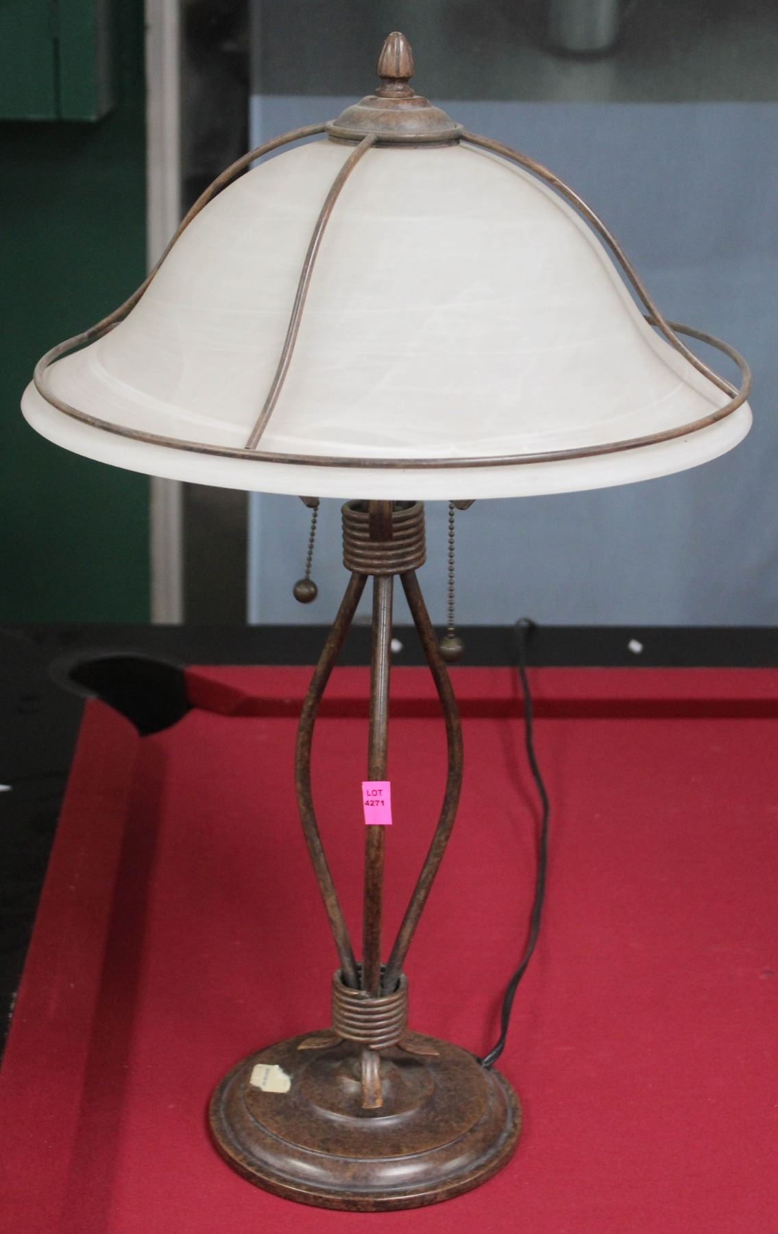 FROSTED PARLOUR TABLE TOP LAMP W/ PULL CHAINS