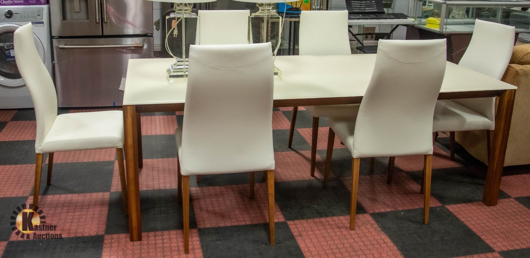 LEATHERETTE CHAIRS 84" X 39" X 29". HEAVY TABLE TOP.     **ALL ITEMS MUST BE REMOVED BY 5PM SATURDAY, NOVEMBER 23RD 2024. ALL REMAINING ITEMS WILL BE SUBJECT TO A $6.00 PER DAY STORAGE CHARGE. ANY ITEMS REMAINING AFTER MONDAY, DECEMBER 9TH 2024 WILL BE CONSIDERED FORFEITED. NO REFUNDS WILL BE ISSUED FOR FORFEITED ITEMS. TO SCHEDULE A PICK UP APPOINTMENT CLICK HERE