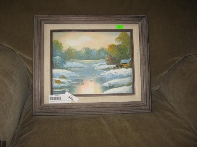 FRRAMED OIL ON CANVAS - LAKE AND CABIN