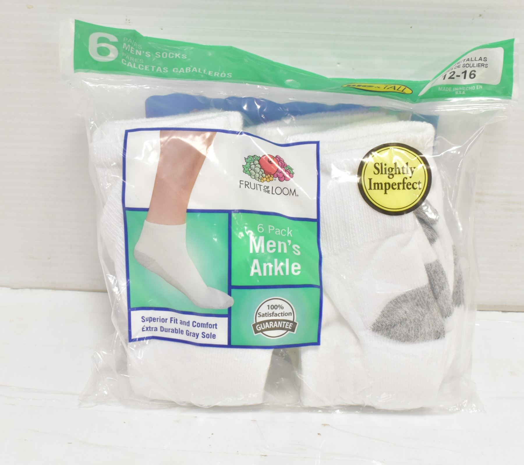 FRUIT OF LOOM MENS ANKLE SOCKS ,6PACK,SIZE 12-16,