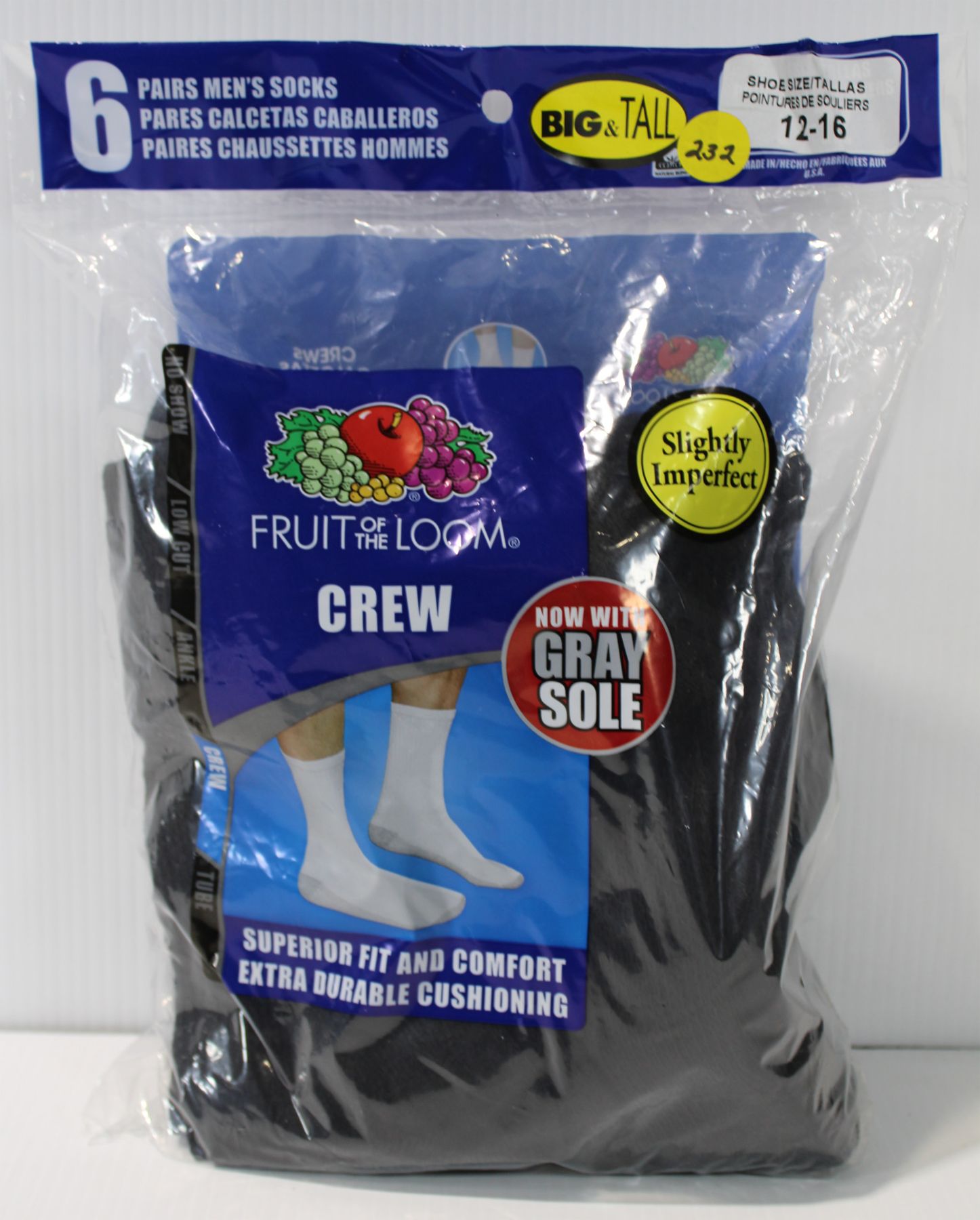 FRUIT OF THE LOOM BIG & TALL MEN'S CREW SOCKS BLK