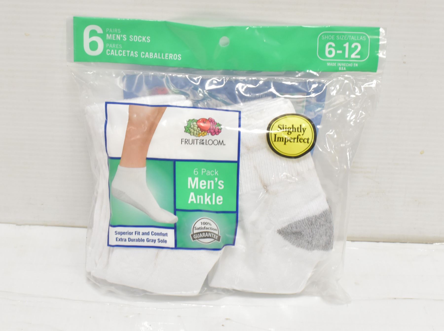 FRUIT OF THE LOOM MENS ANKLE SOCKS ,6PACK,SIZE