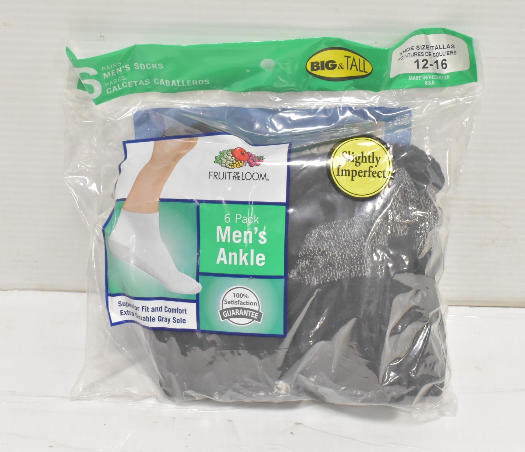 FRUIT OF THE LOOM MENS ANKLE SOCKS, 6PACK, SIZE