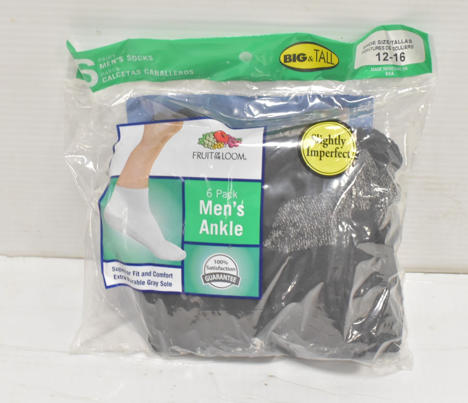 FRUIT OF THE LOOM MENS ANKLE SOCKS, 6PACK, SIZE