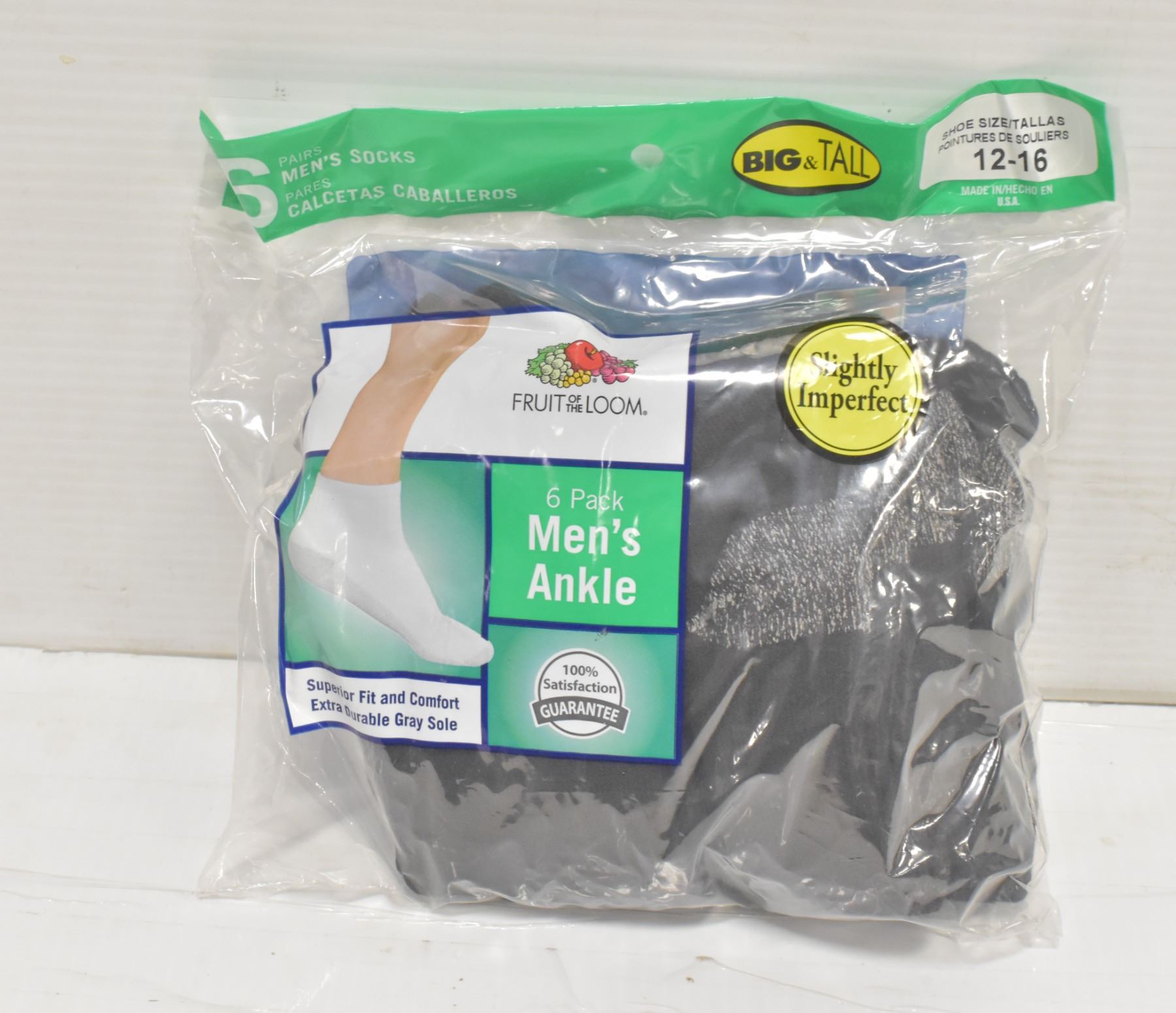 FRUIT OF THE LOOM MENS ANKLE SOCKS, 6PACK, SIZE