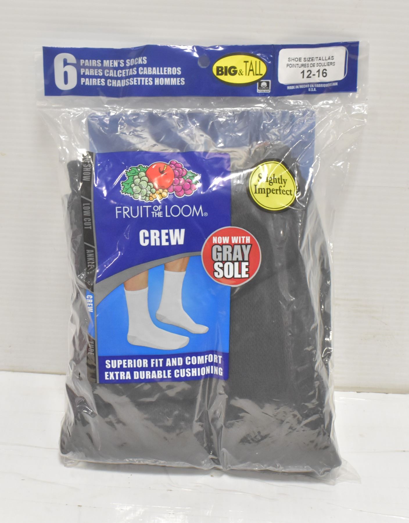 FRUIT OF THE LOOM MENS CREW SOCKS, 6PACK, SIZE