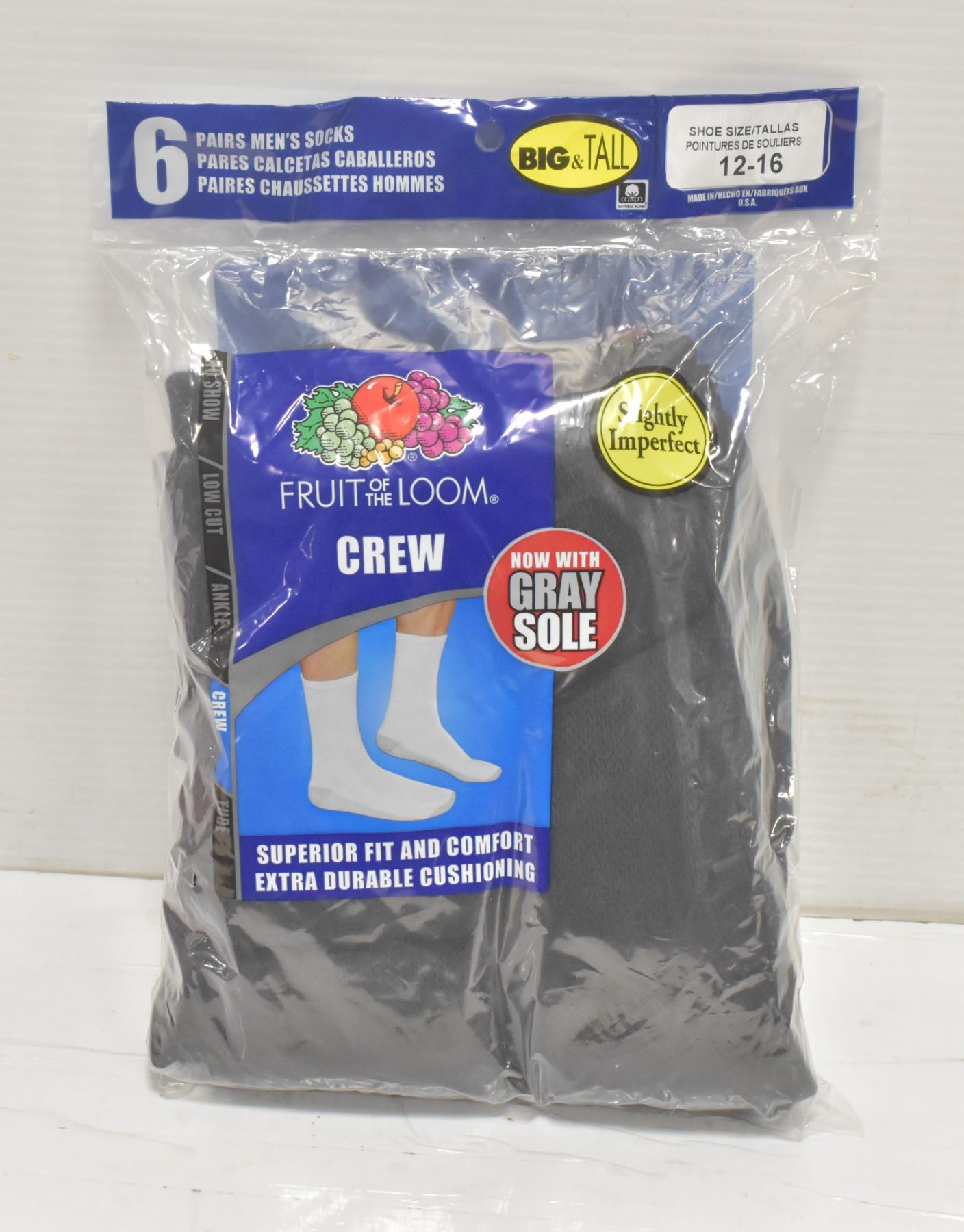 FRUIT OF THE LOOM MENS CREW SOCKS, 6PACK, SIZE