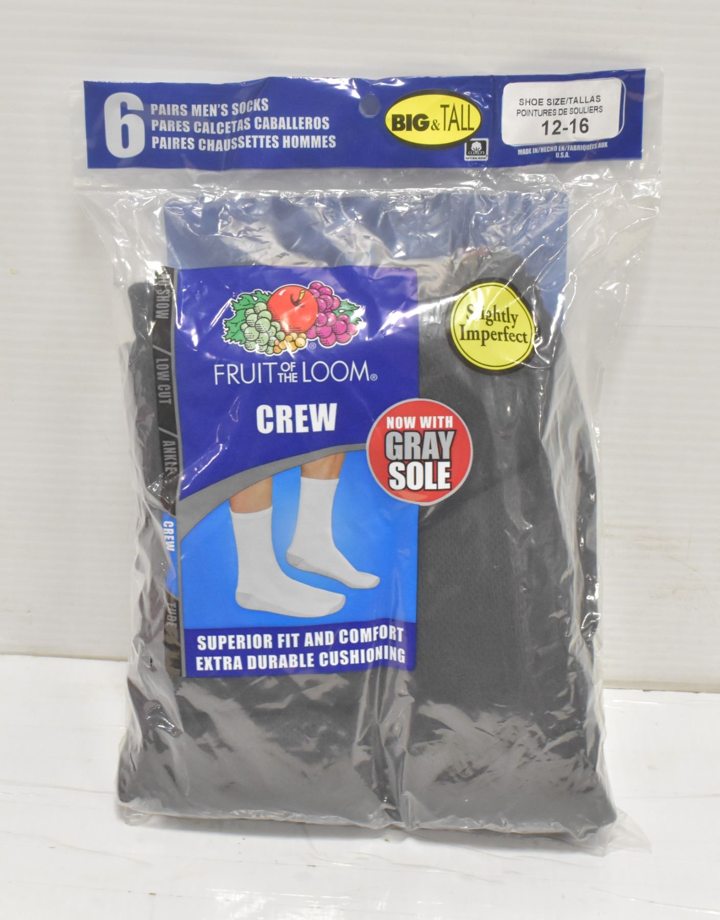 FRUIT OF THE LOOM MENS CREW SOCKS, 6PACK, SIZE
