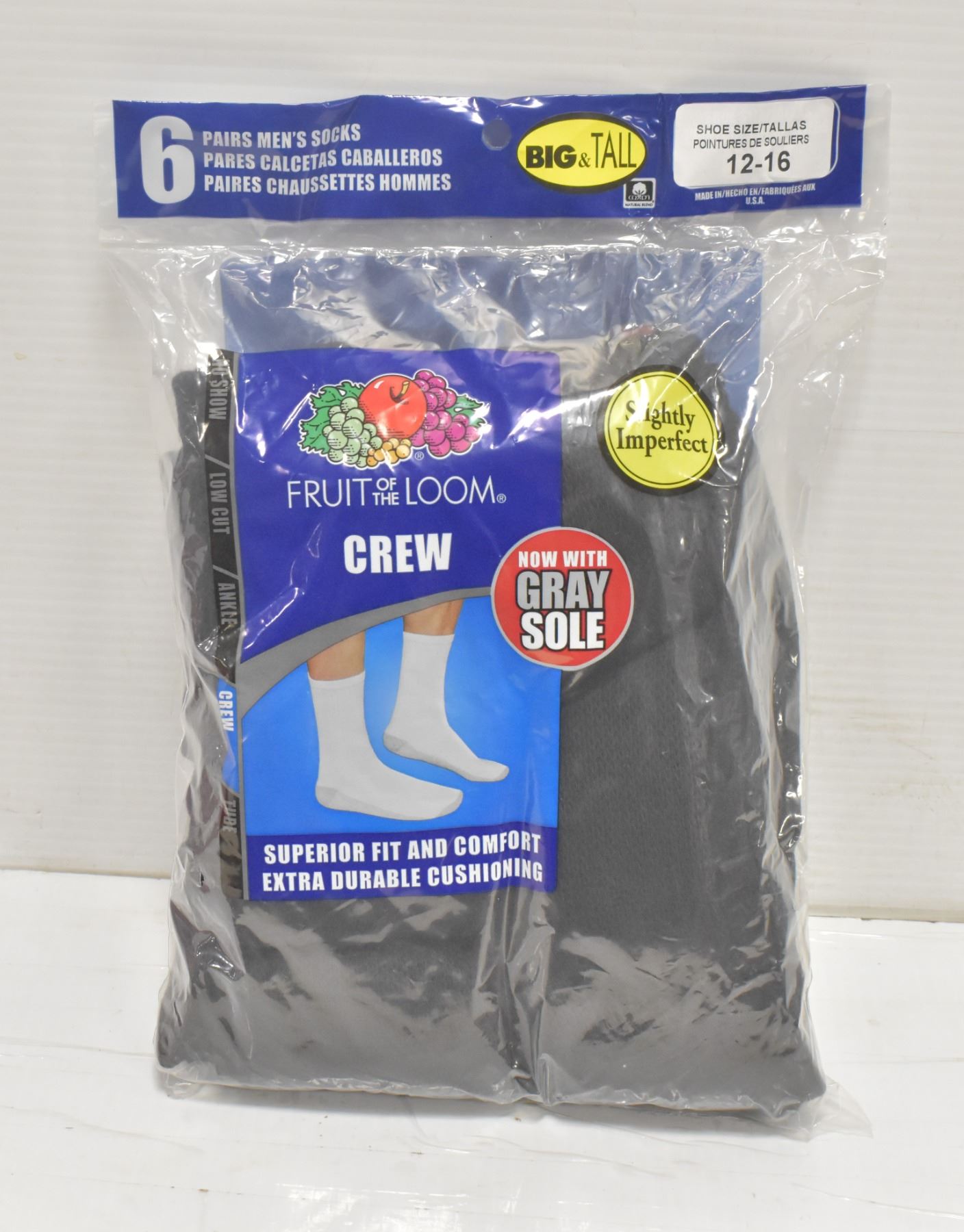 FRUIT OF THE LOOM MENS CREW SOCKS, 6PACK, SIZE