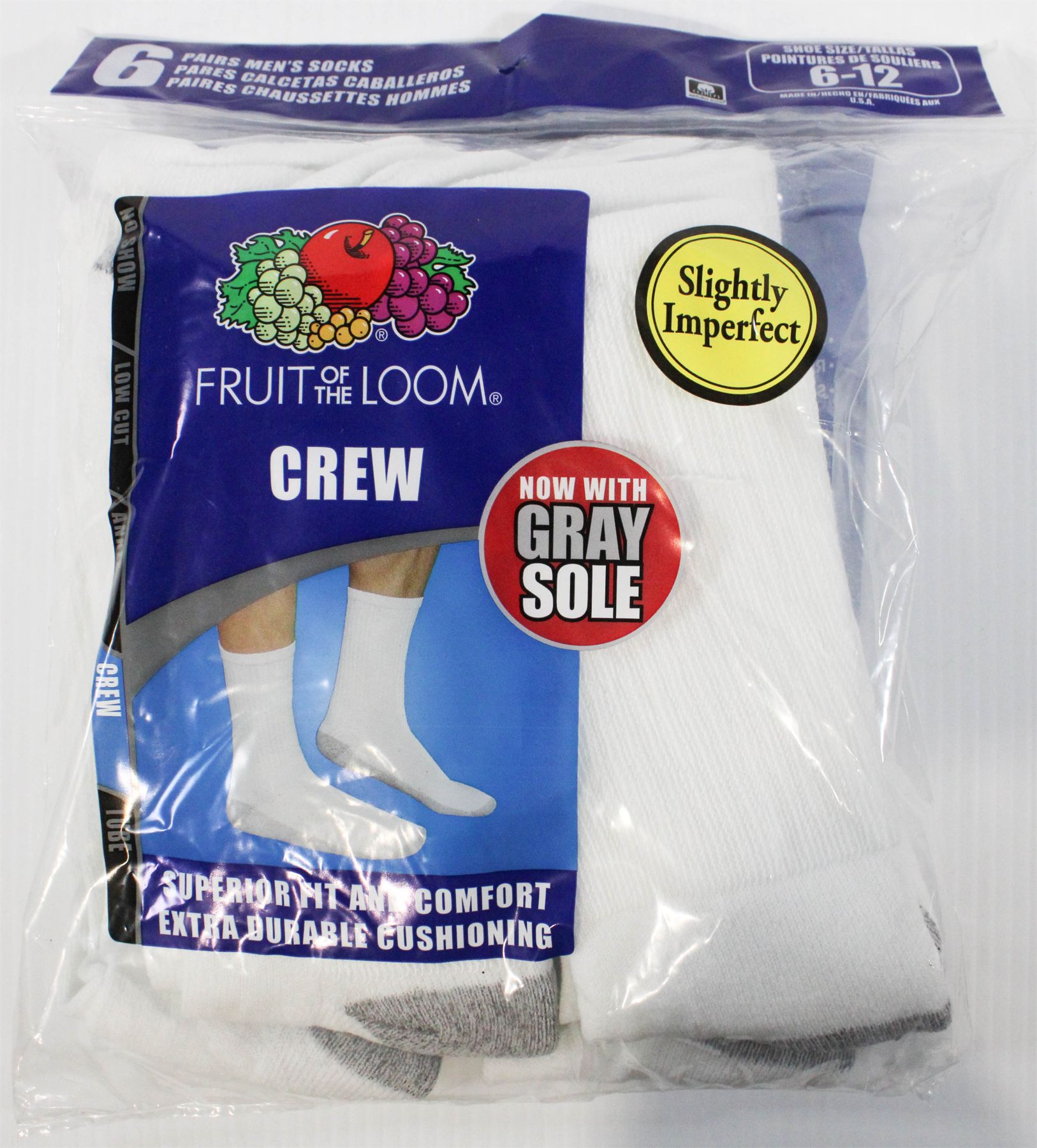 FRUIT OF THE LOOM WHITE & GREY MENS CREW SOCKS