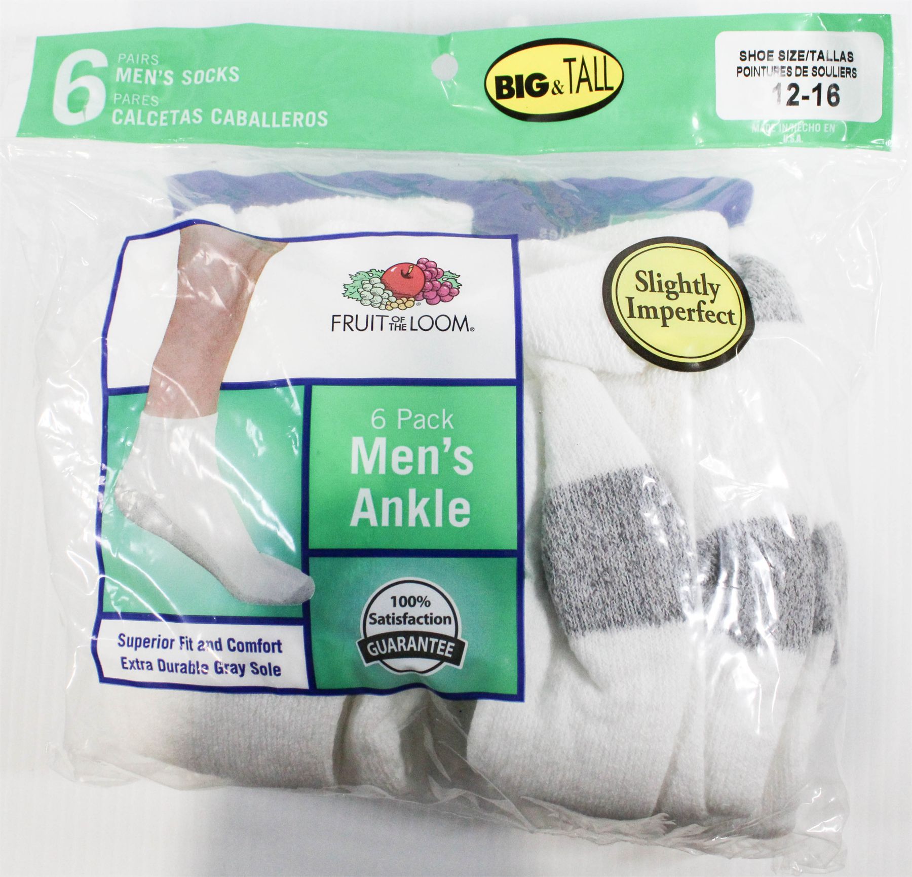 6 PAIRS OF BIG & TALL SIZE 12-16 ANKLE SOCKS