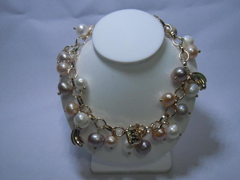 FRUITY TRI-COLOR PEARL CHARM BRACELET; AUTHENTIC PHILIP **|**|** FRUITY TRI-COLOR PEARL CHARM BRACELET; AUTHENTIC PHILIPPINE PEARL; METAL-14/20 CHAIN; SIZE - 8 INCH ; MSRP: $300