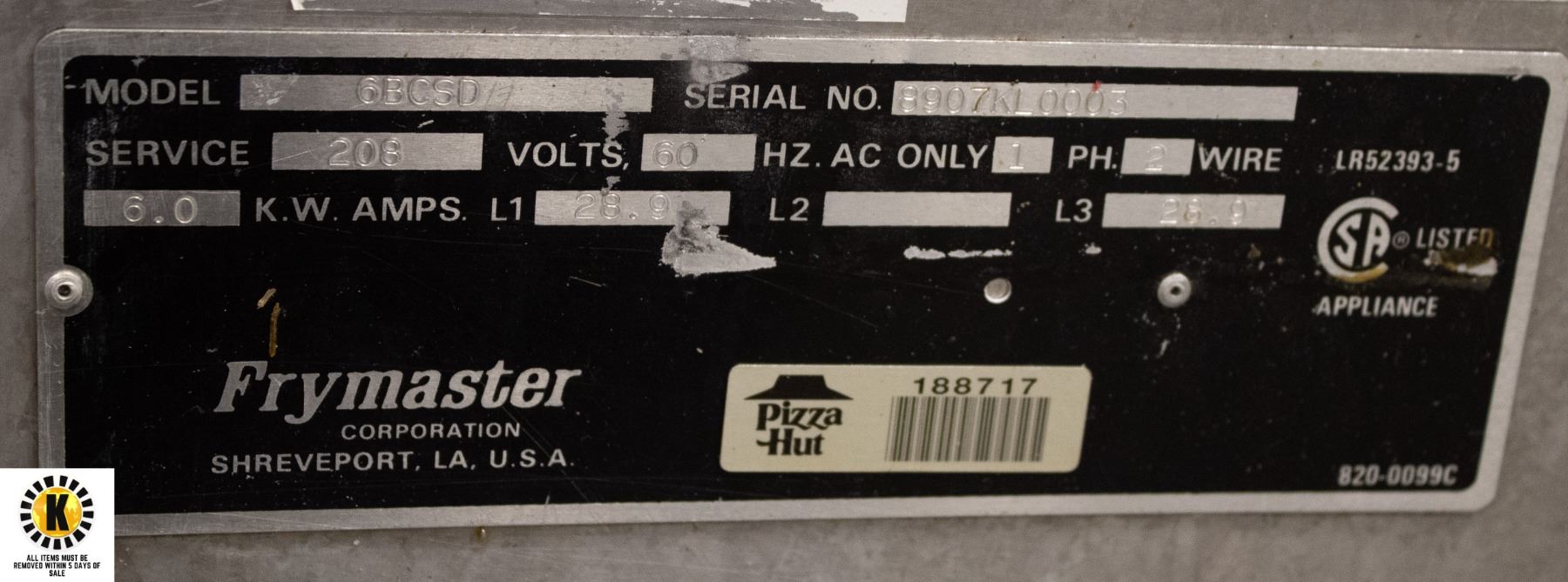 FRYMASTER MOD# 6BCSD PASTA COOKER