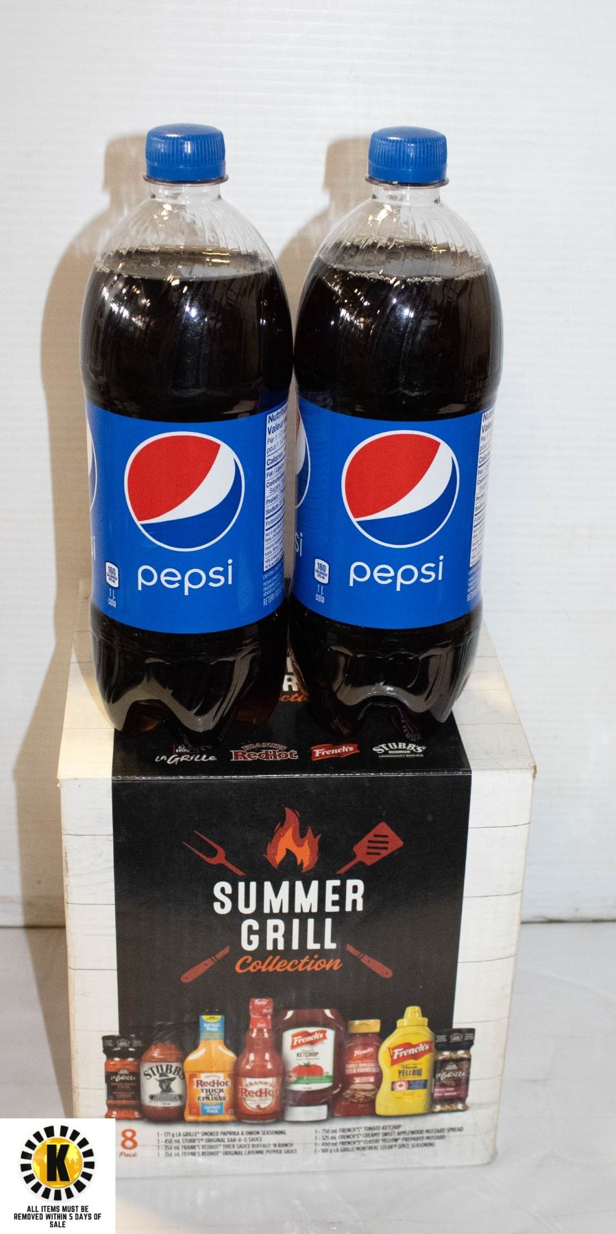 BOX INCLUDES EXPIRED ITEMS & 2 1L BOTTLES PEPSI BB SE 18 23