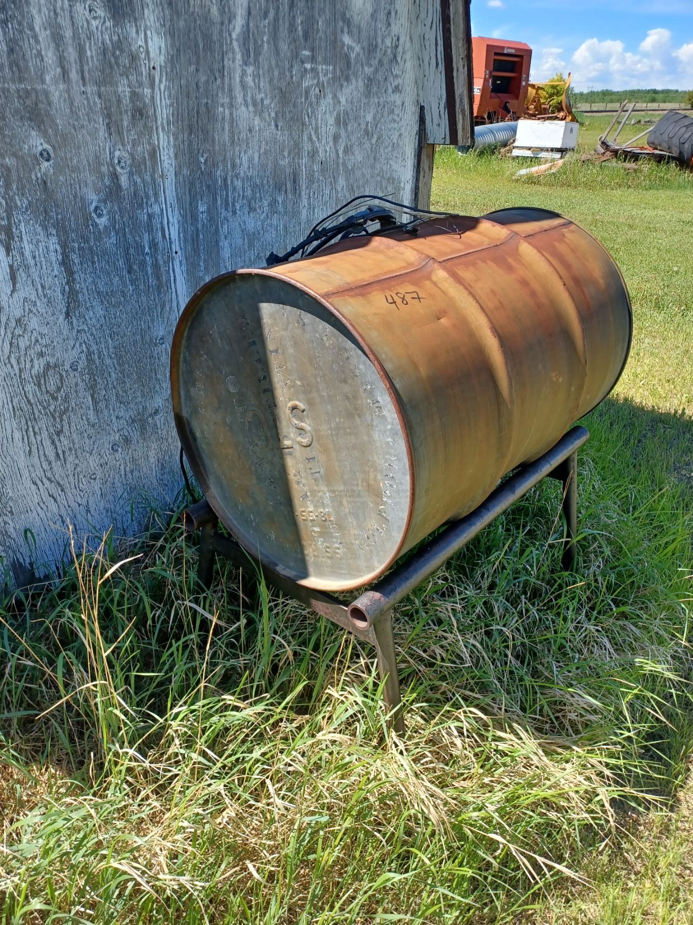 FUEL DRUM (MOUNTED ON IRON STAND)