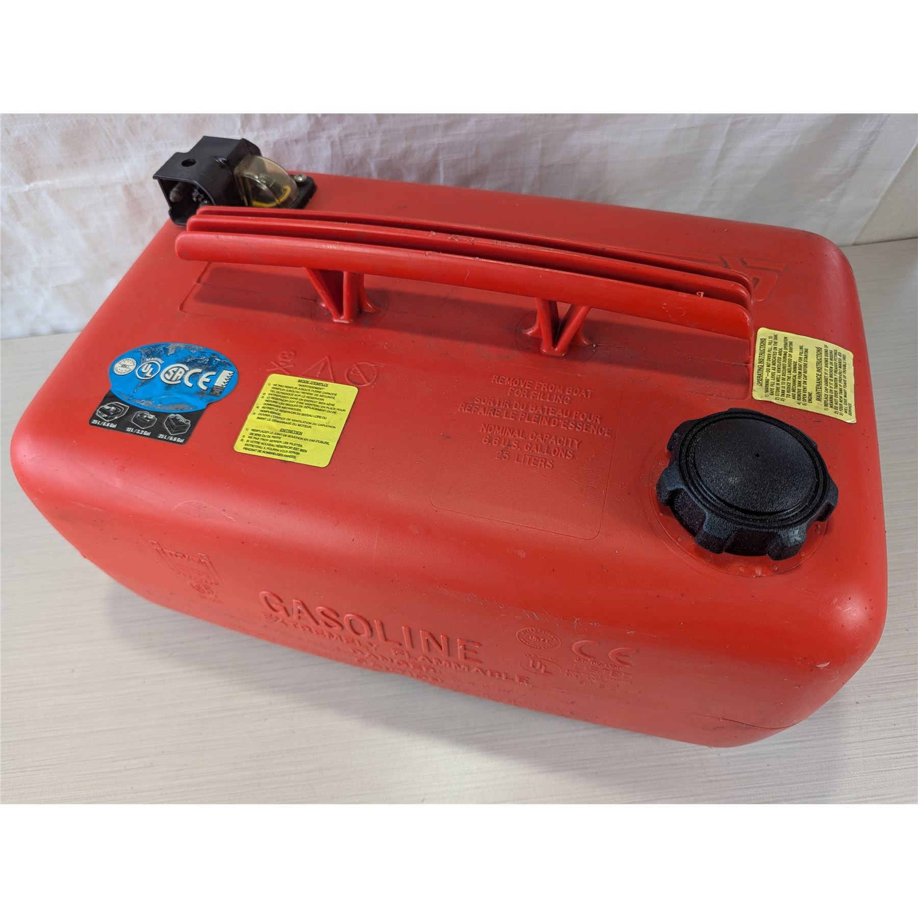QUICKSILVER MARINE GASOLINE CONTAINER. With 25 Litre 6.6 US Gallon capacity