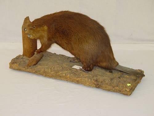 FULL BODIED MOUNTED BEAVER ON A BARKED WOODEN BASE (34") - WEAR & IMPERFECTIONS;