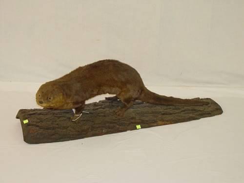 FULL BODIED MOUNTED OTTER ON A BARKED WOODEN BASE (37");